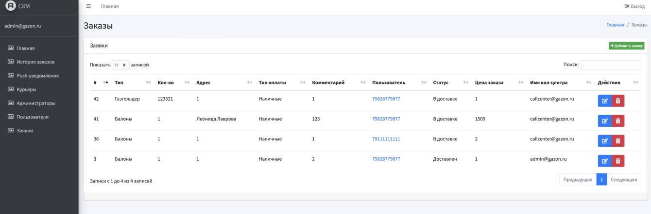 Разработать мобильное приложение для заказа балонов и газгольдеров, CRM-систему, и внутренее приложение для курьеров.