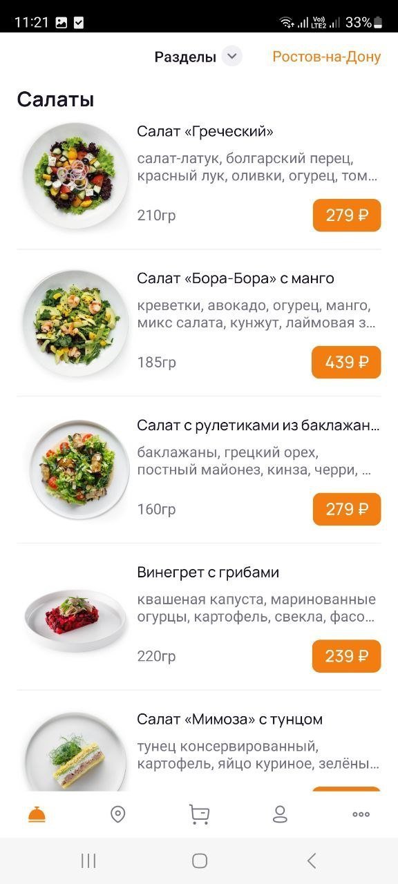 Разработка приложения по доставке еды.