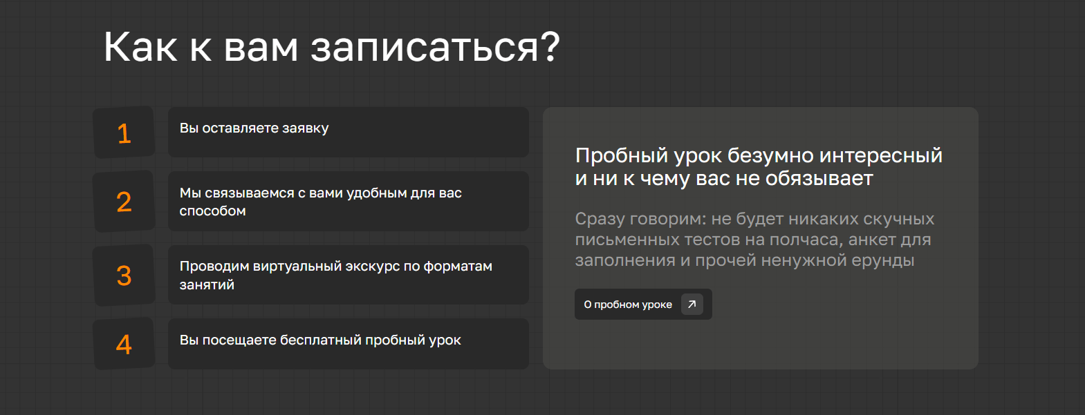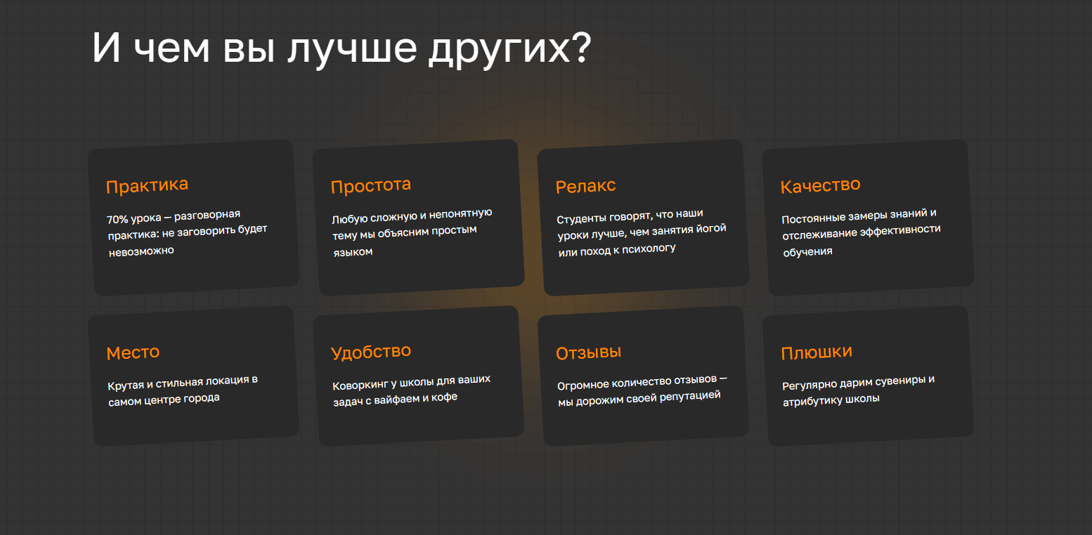 Сайт закрыл ключевые страхи и сомнения и максимально полно, наглядно показал преимущества школы, а также повысил уровень доверия и добавил веса и статуса.