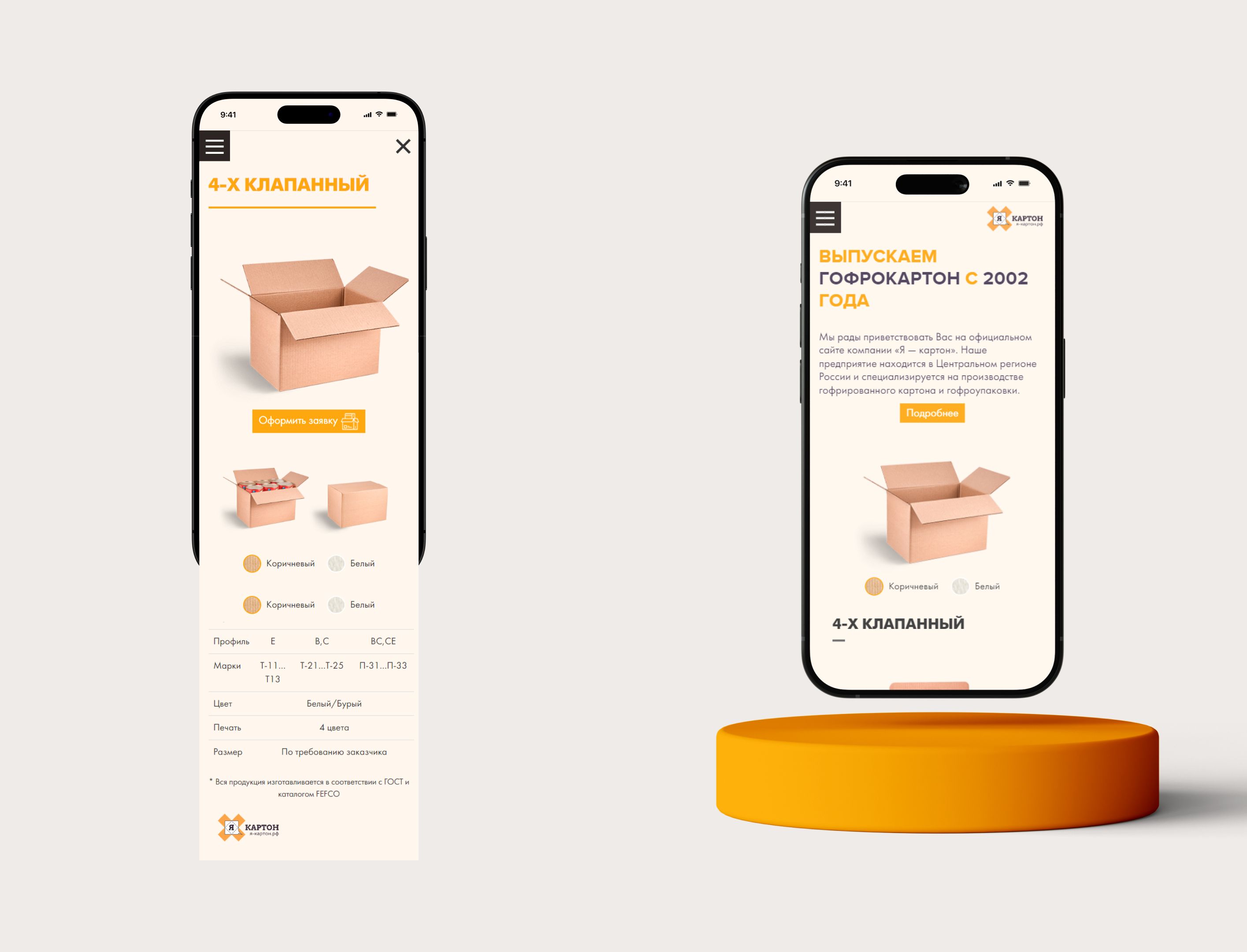 Разработанный лендинг для картонно-тарного комбината «Я – картон» успешно представляет компанию и её продукцию в интернете. Уникальный предзагрузчик с анимацией загрузки продуктов в коробку сразу вовлекает пользователя, подчеркивая тематику бизнеса. Лаконичный дизайн, удобная навигация и каталог с товарными карточками позволяют клиентам легко ознакомиться с ассортиментом гофроупаковки, её преимуществами и оформить заказ прямо на сайте. Лендинг повысил онлайн-видимость компании, упростил процесс взаимодействия с клиентами и способствовал увеличению числа заказов.
