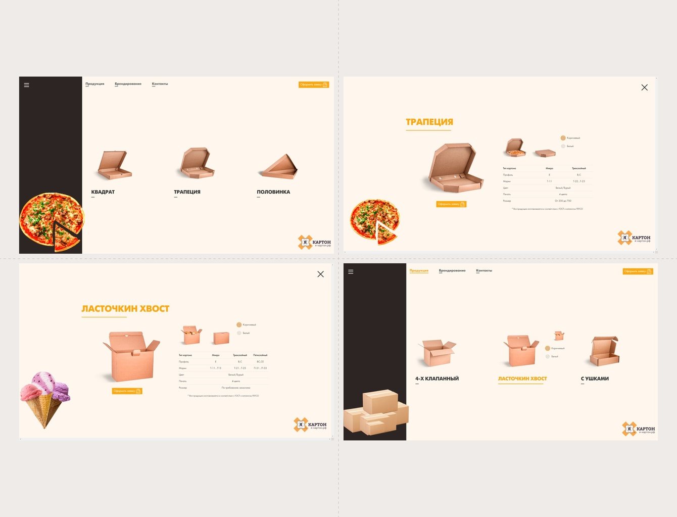 Разработка Landing Page, которая представляла бы комбинат и его продукцию в Интернете. В наши задачи входила разработка общей концепции и прототипов, а также программирование и релиз проекта. Особенность сайта – в наличии товарных карточек для каждого из видов коробок и возможность оформления заказа через него.