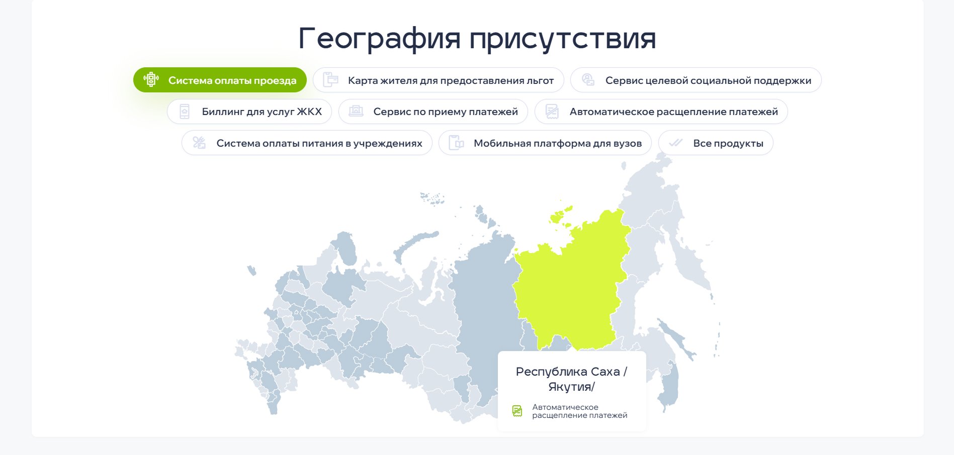 — Пользователь может легко получить информацию о присутствии компании в регионах.