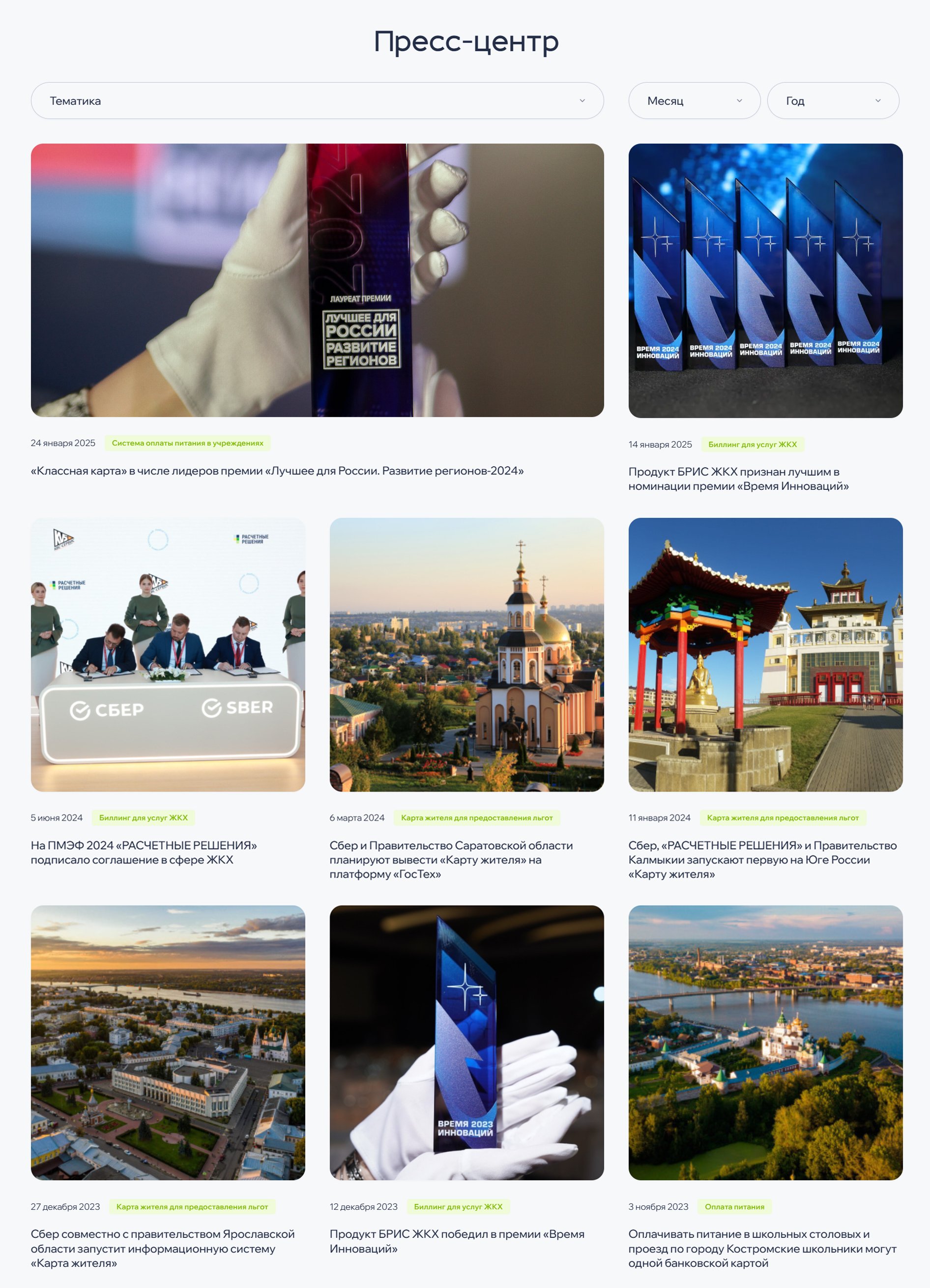 — Пресс-центр — доступны ановости с фильтрацией по тематике и дате.