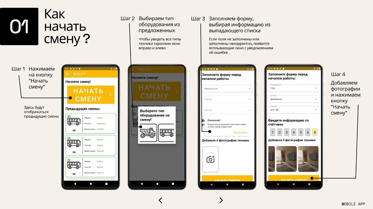 Мы провели исследование работы на объектах заказчика и пришли к выводу, о том что контроль за техникой и персоналом должен осуществляться за счёт датчиков на оборудовании и системы отчётности для рабочих внутри мобильного приложения. Чтобы обеспечить работоспособность датчиков и мобильного приложения мы разработали API на Java + Spring добавили базы данных PostgreSQL, MongoDB и MinIO и развернули всё в собственной серверной