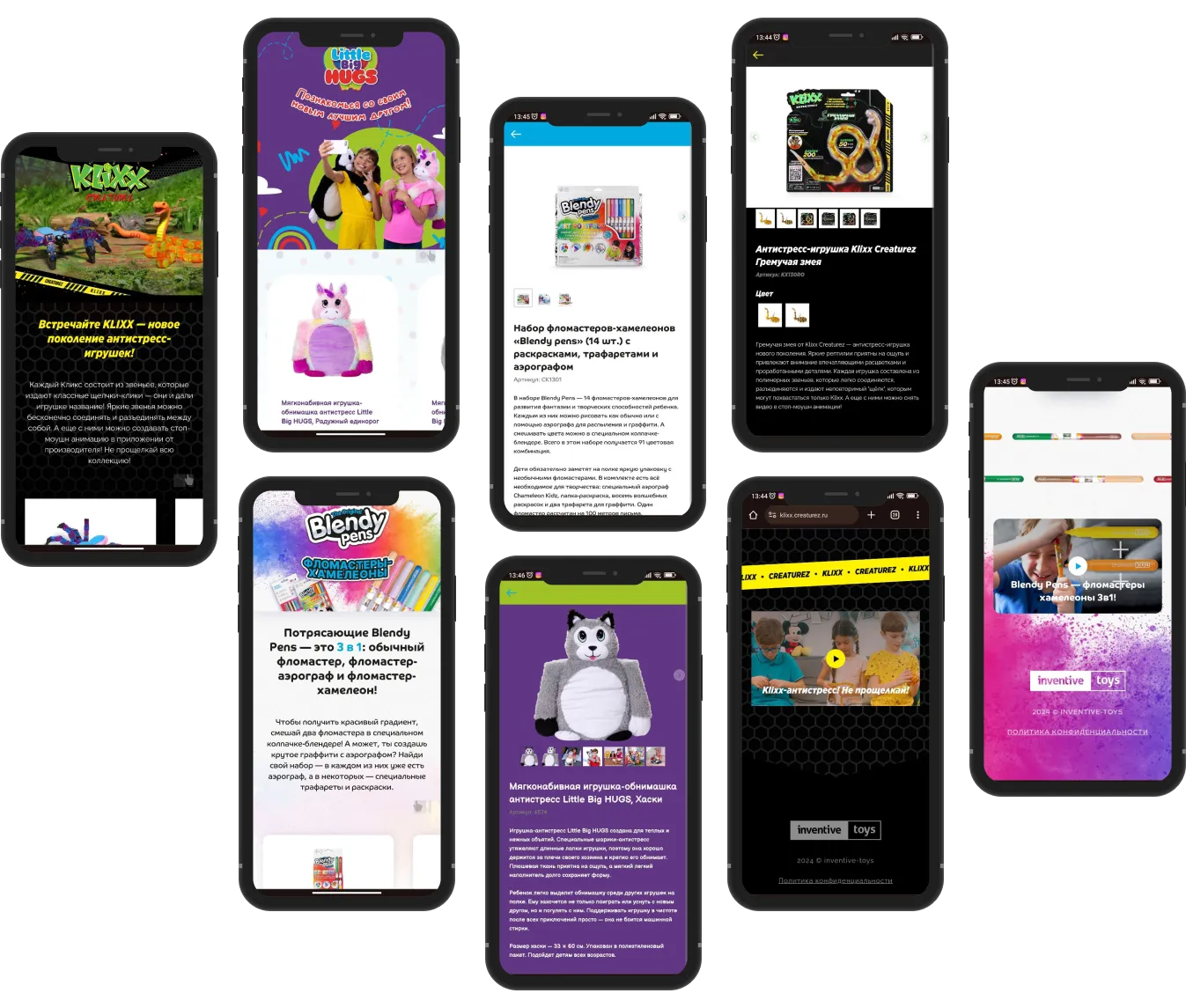 Компания Inventive Toys обратилась к нам с просьбой разработать промо-лендинги для продвижения различных линеек детских игрушек. Сложность проекта заключалась в том, что требовалось создать несколько сайтов в сжатые сроки, при этом они должны были быть удобными для редактирования и иметь гибкие настройки.