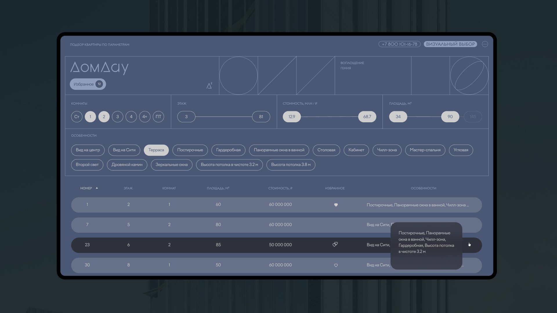 — Работают два варианта выбора квартиры: визуальный и подбор по параметрам с удобными фильтрами.
