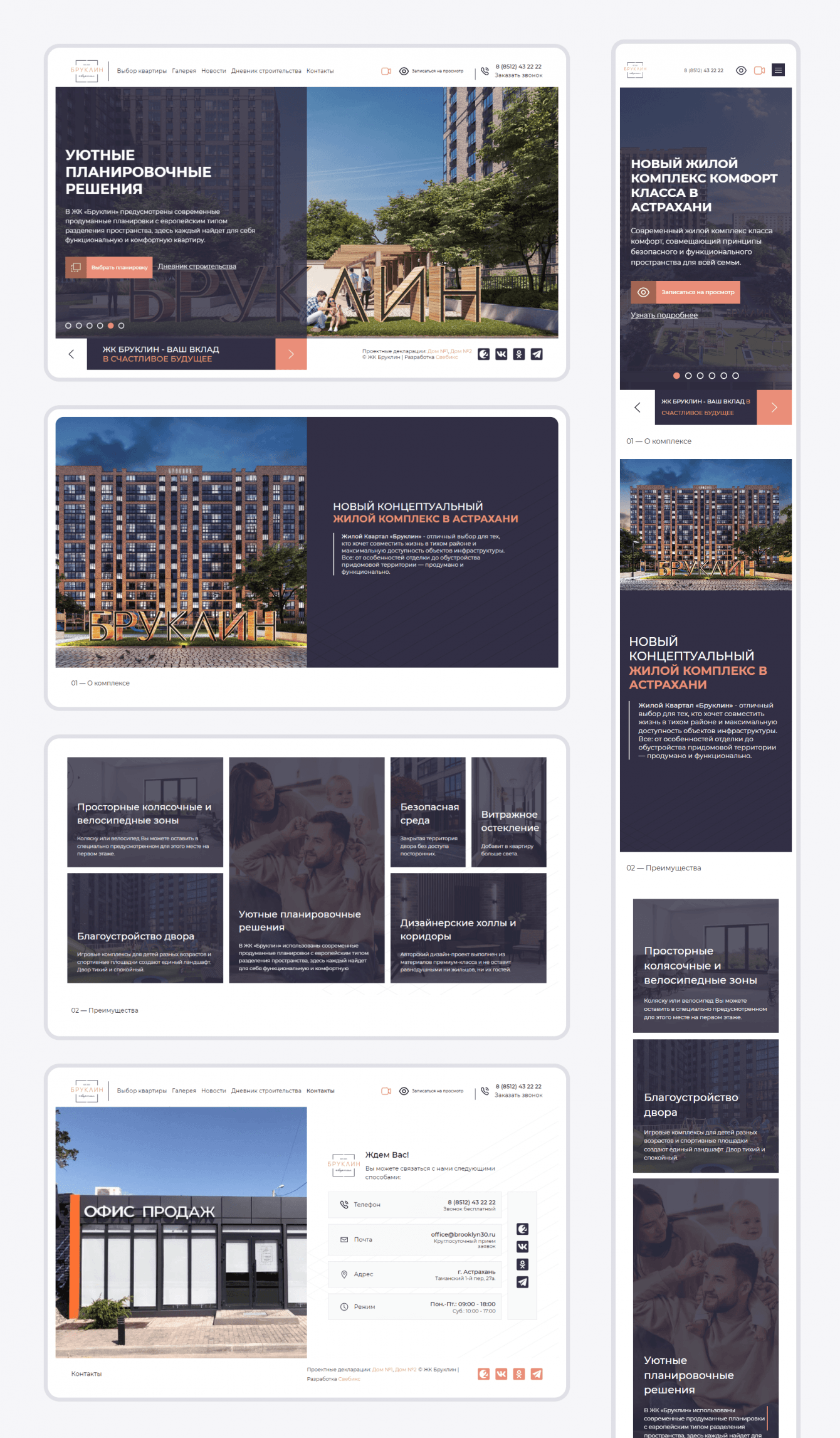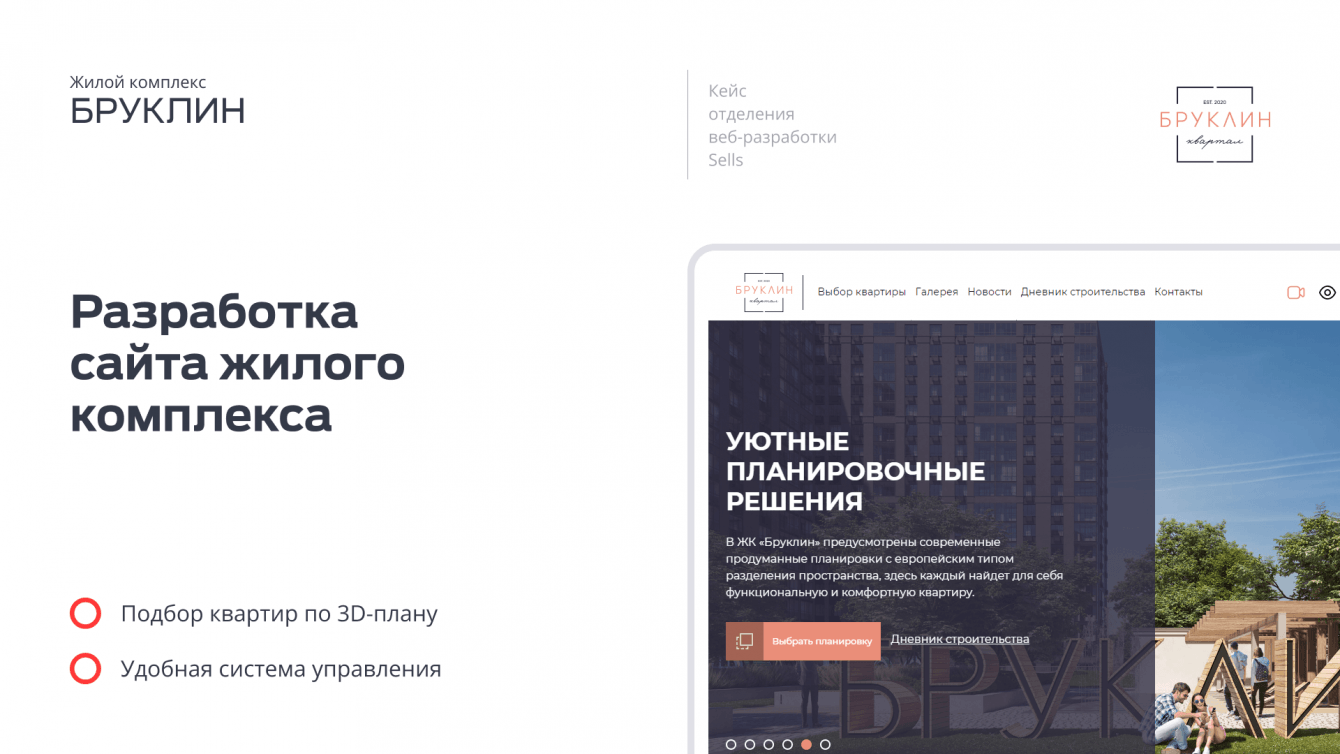 Клиент обратился с задачей разработки компактного сайта, который наглядно раскроет все преимущества проекта в глазах потенциального покупателя. Мы разработали дизайн в классическом стиле, за основу взяли темно-синий и белый цвета, используя яркий фирменный цвет только как акцент. Для придания динамики разделили визуально экран на две части, не перегружая при этом элементами.