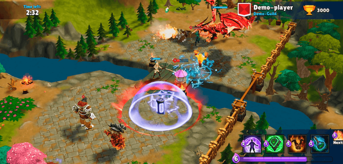 - Боевая логика: прямой урон, начисление здоровья, механика DoT (урон со временем), HoT (лечение со временем) и AoE (урон по области);