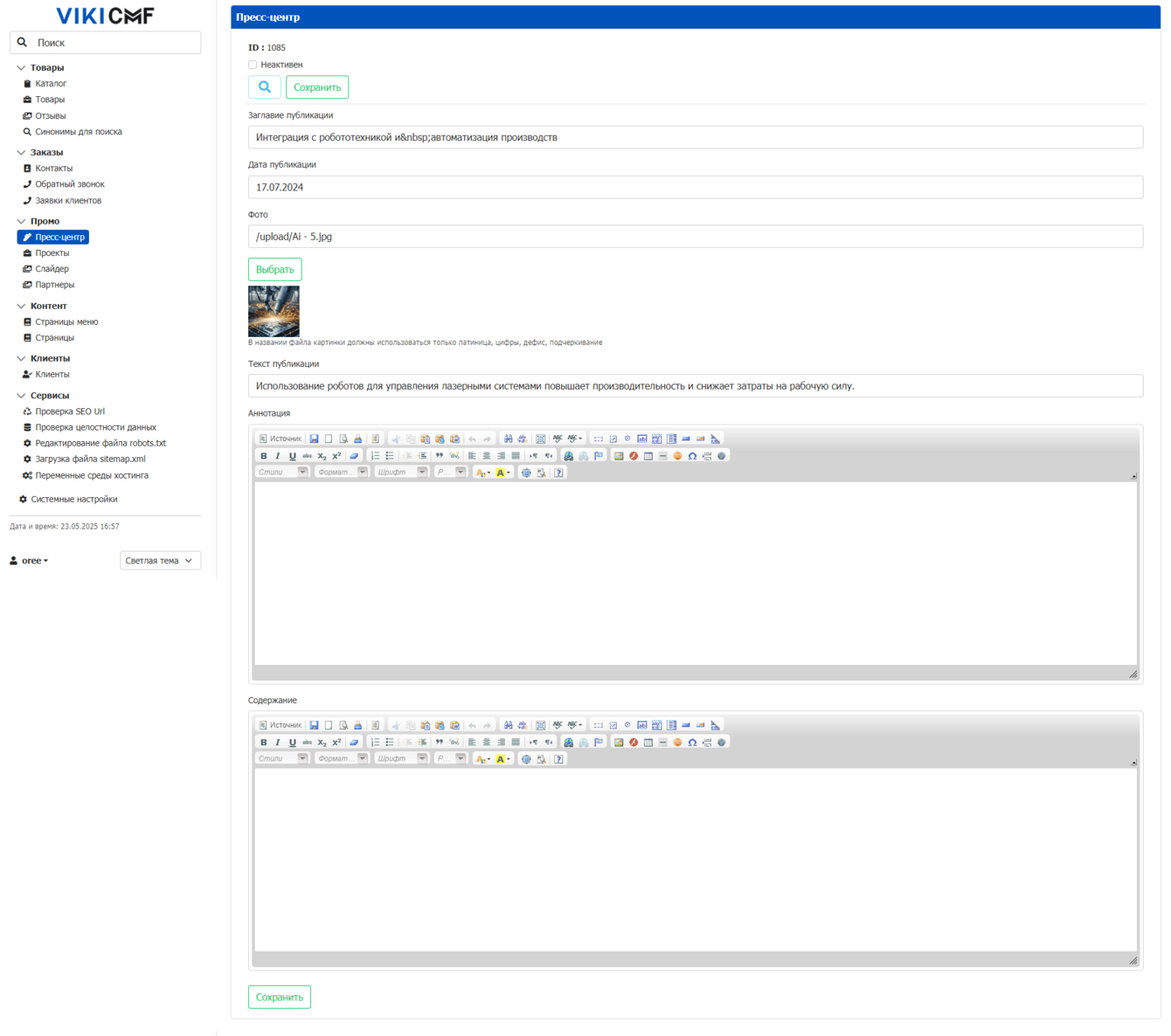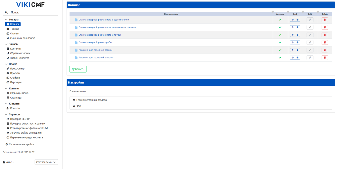 Внедрили верстку в движок сайта с админ-панелью для удобного изменения, добавления товаров и другого контента