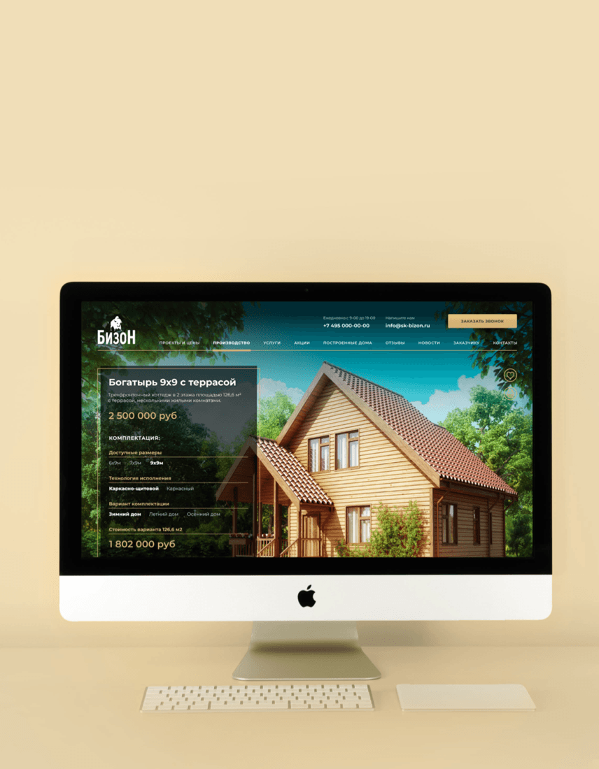 В дизайне мы подчеркнули уют проектов домов, используя теплые корпоративные цвета. Острые формы выражают принадлежность к строительству и отточенным, проработанным проектам.