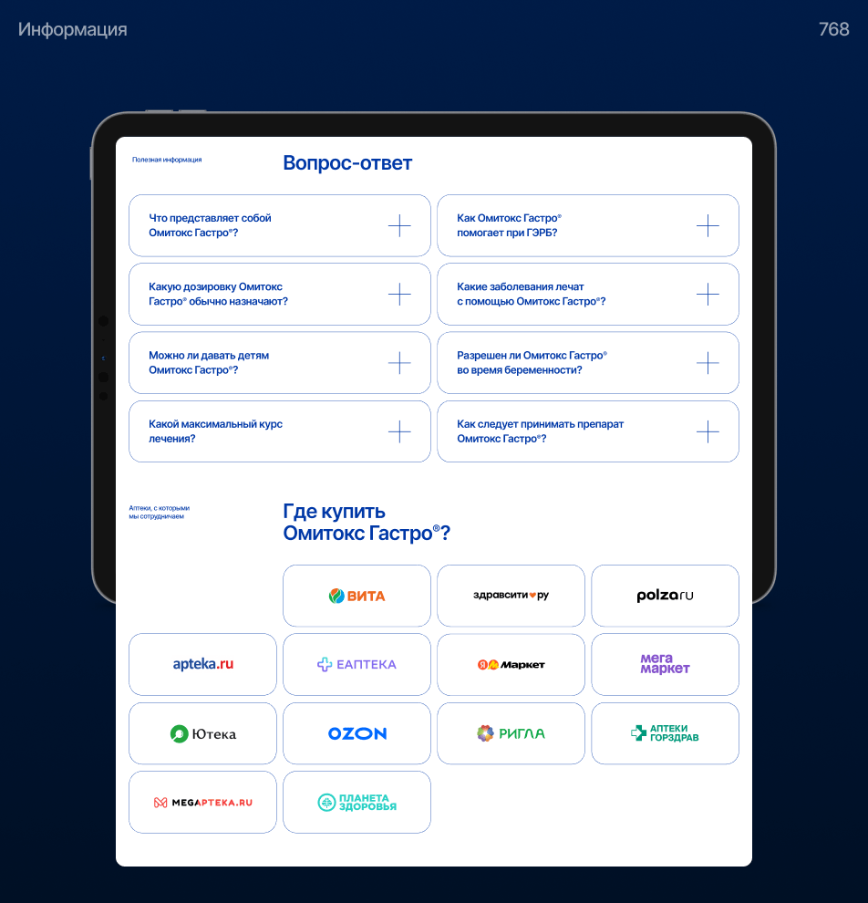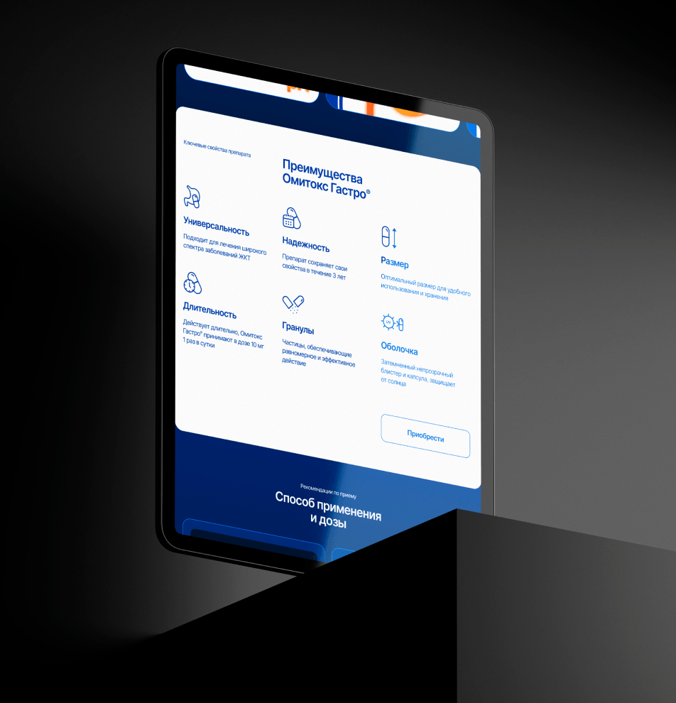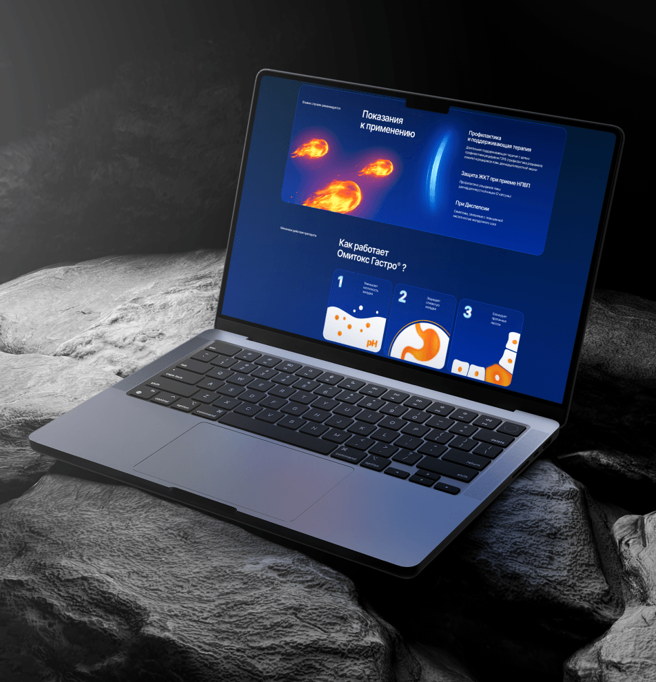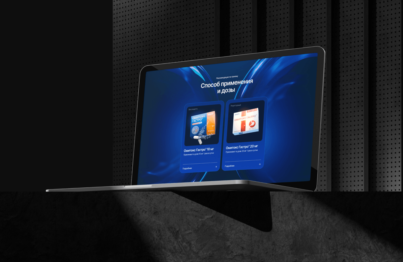 Мы создали современный сайт для препарата Омитокс Гастро®, объединив информативность, эстетику и удобство использования.