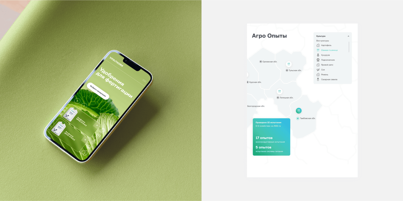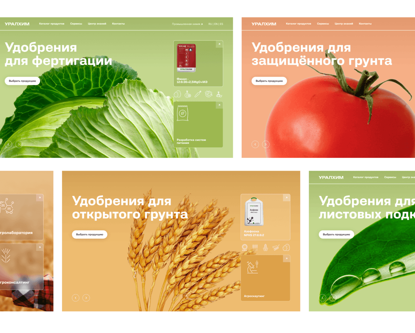 Основная задача сайта — привлечение новых потребителей и продажа продукции компании. Помимо высокоэффективных видов удобрений, Уралхим предлагает комплексные решения для аграрного бизнеса, основанные на обширном опыте в сельском хозяйстве и развитии цифровизации. Для того чтобы в полной мере отразить ценностное предложение компании, важно было структурировано подать информацию, сделать сайт визуально приятным и удобным для использования.
