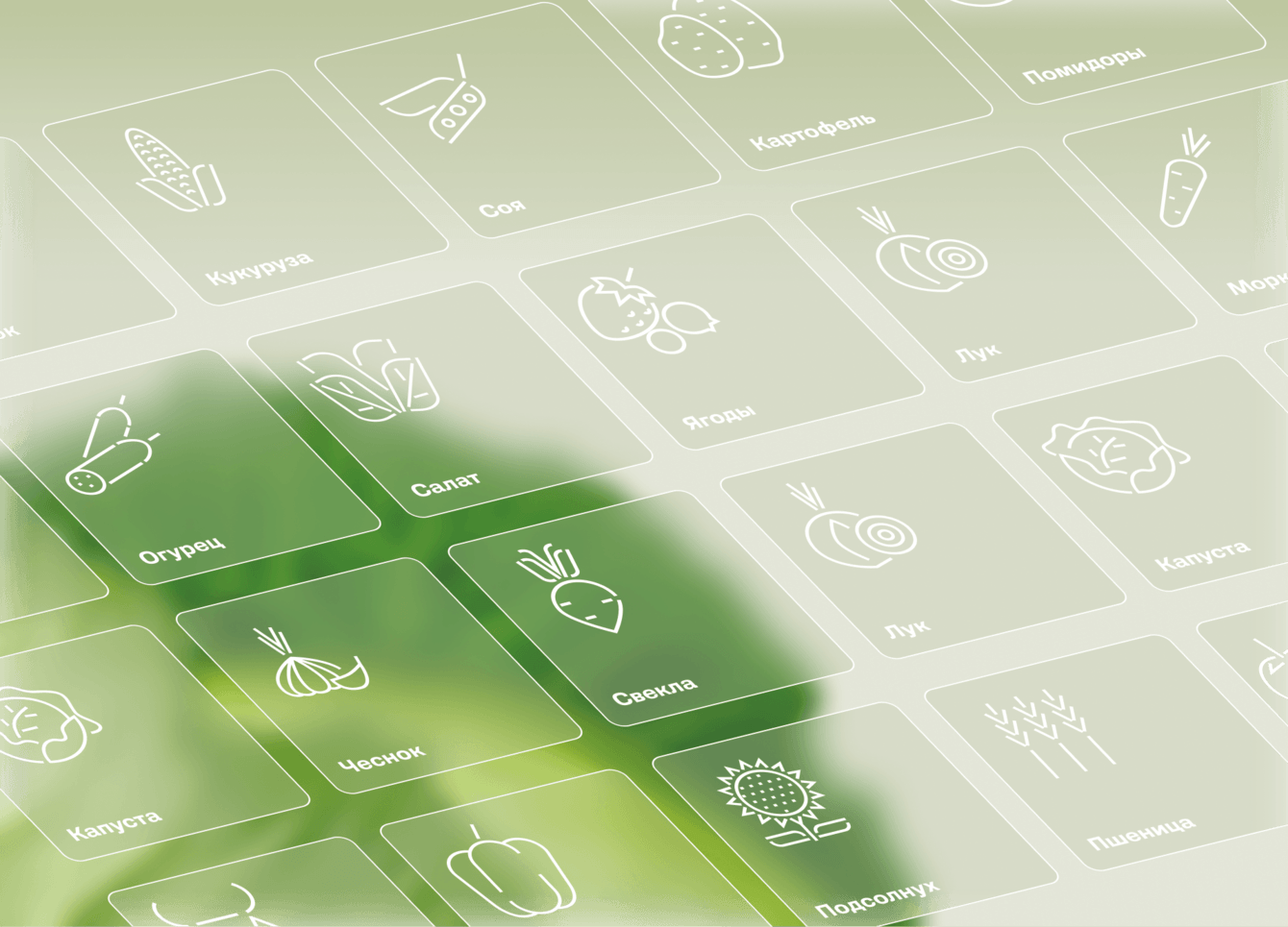 Стабильность и инновационность бренда мы отразили за счет контрастов в визуальном языке. С одной стороны, он сдержан и лаконичен — в нем нет излишеств, которые могли бы отвлечь пользователя от УТП компании. В продуктовых же элементах заметна некая игривость, выраженная в сочных оттенках желтого, зеленого и красного. Яркие фотографии с/х культур на главной странице создают понятные ассоциации для основных потребителей продукции сайта — крупных аграрных компаний и частных фермеров.