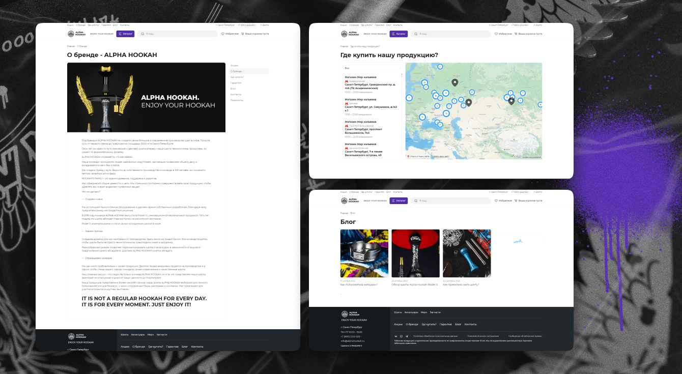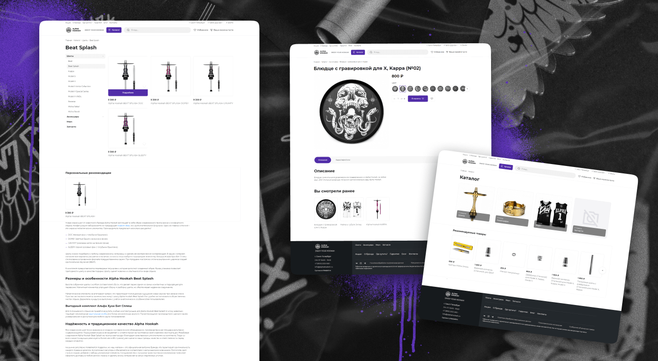 Нам удалось сделать стильный, удобный и внимательно проработанный в каждой своей детали сайт для мирового бренда «Alpha Hookah». С первых недель мы увидели впечатляющие показатели как по взаимодействию пользователей с сайтом, так и по продвижению в поиске.