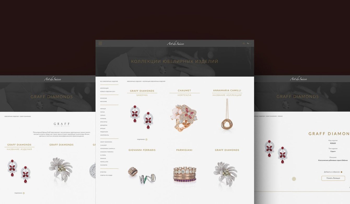 Задача: разработать сайт «витрину», где можно было бы выбрать и приобрести уникальные и роскошные украшения от ведущих мировых брендов.