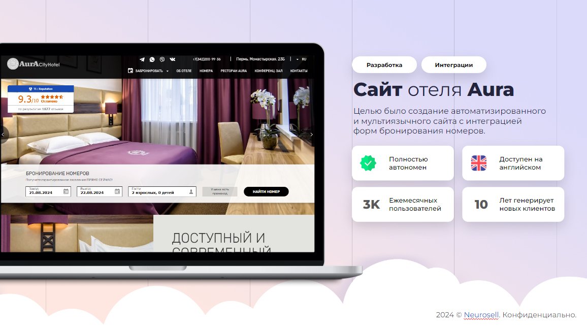 Создали автоматизированное решение с интеграцией по бронированию, которое вот уже 10 лет приводит новых клиентов. Сайт обрабатывает 3,000 пользователей каждый месяц и предлагает качественный сервис бронирования для приезжих гостей города Перми.