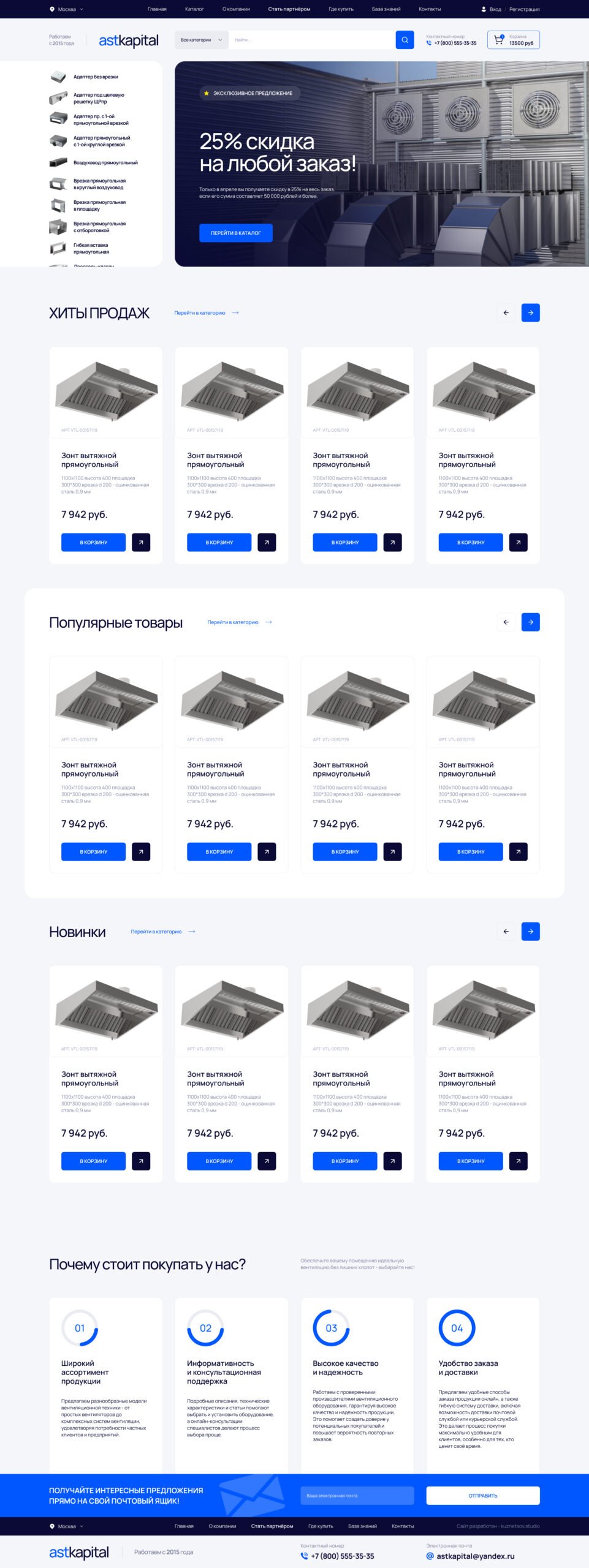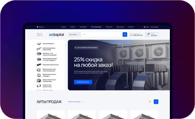 Проект «B2B интернет-магазин вентиляционного оборудования» — это не просто каталог товаров, а мощный инструмент для ведения бизнеса. Наш сайт объединяет в себе удобство использования, функциональность и стильный дизайн, создавая идеальные условия для успешных покупок и долгосрочного сотрудничества.