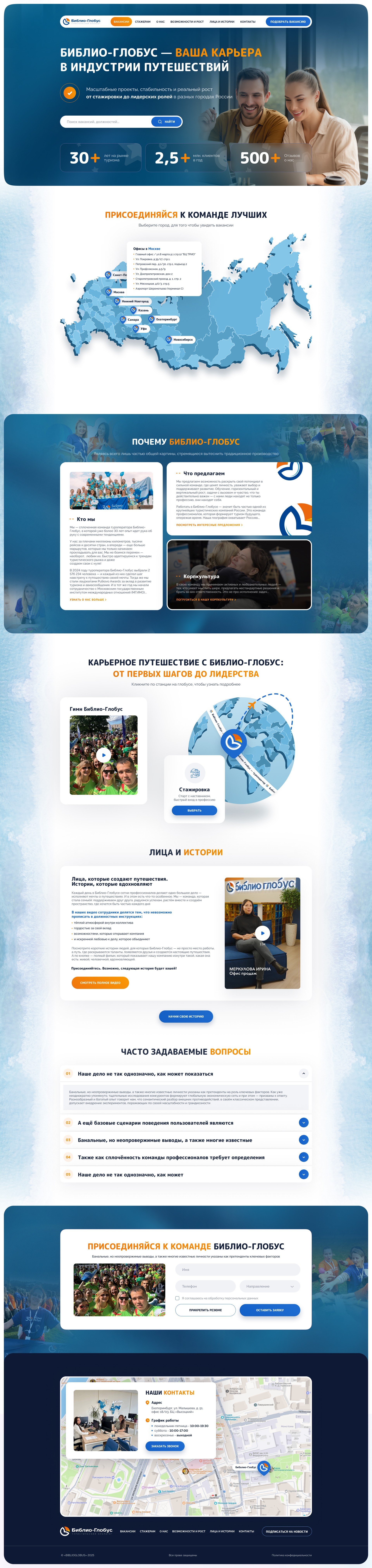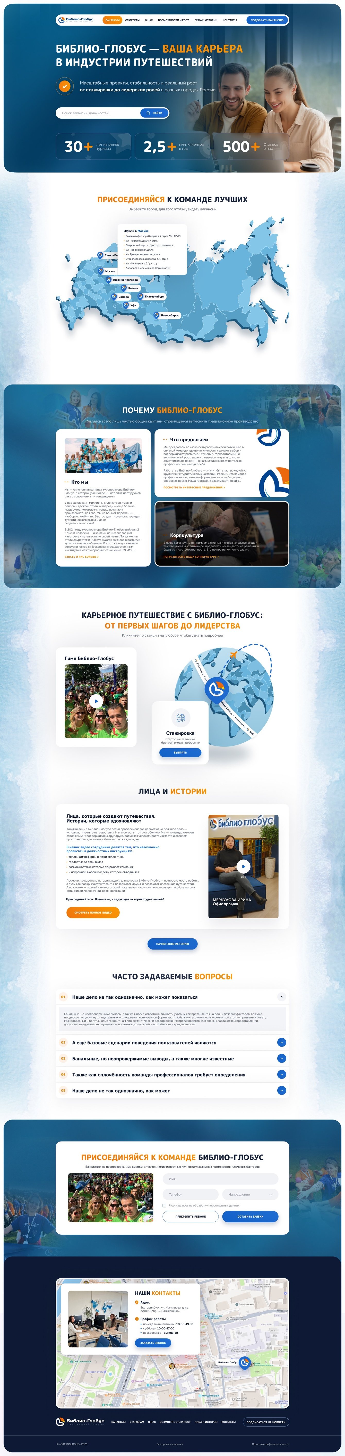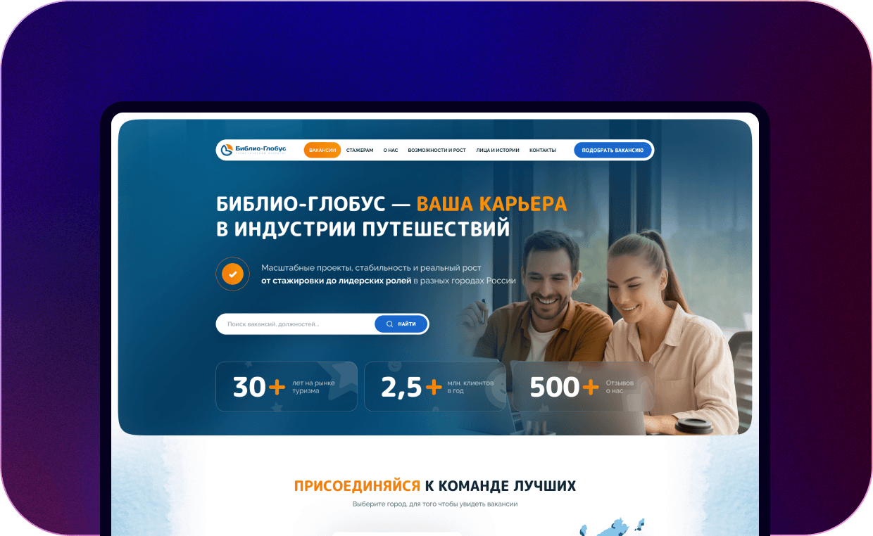 Перед нами стояла задача разработать HR-сайт для крупного российского туроператора с более чем 30-летней историей и офисами по всей стране. Это масштабный и нестандартный проект, к которому мы подошли с большим интересом и ответственностью.