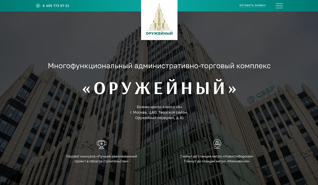 Лендинг многофункционального комплекса «Оружейный» разработан в едином фирменном стиле компании с информативным содержанием. Проект реализован на платформе 1С-Битрикс.