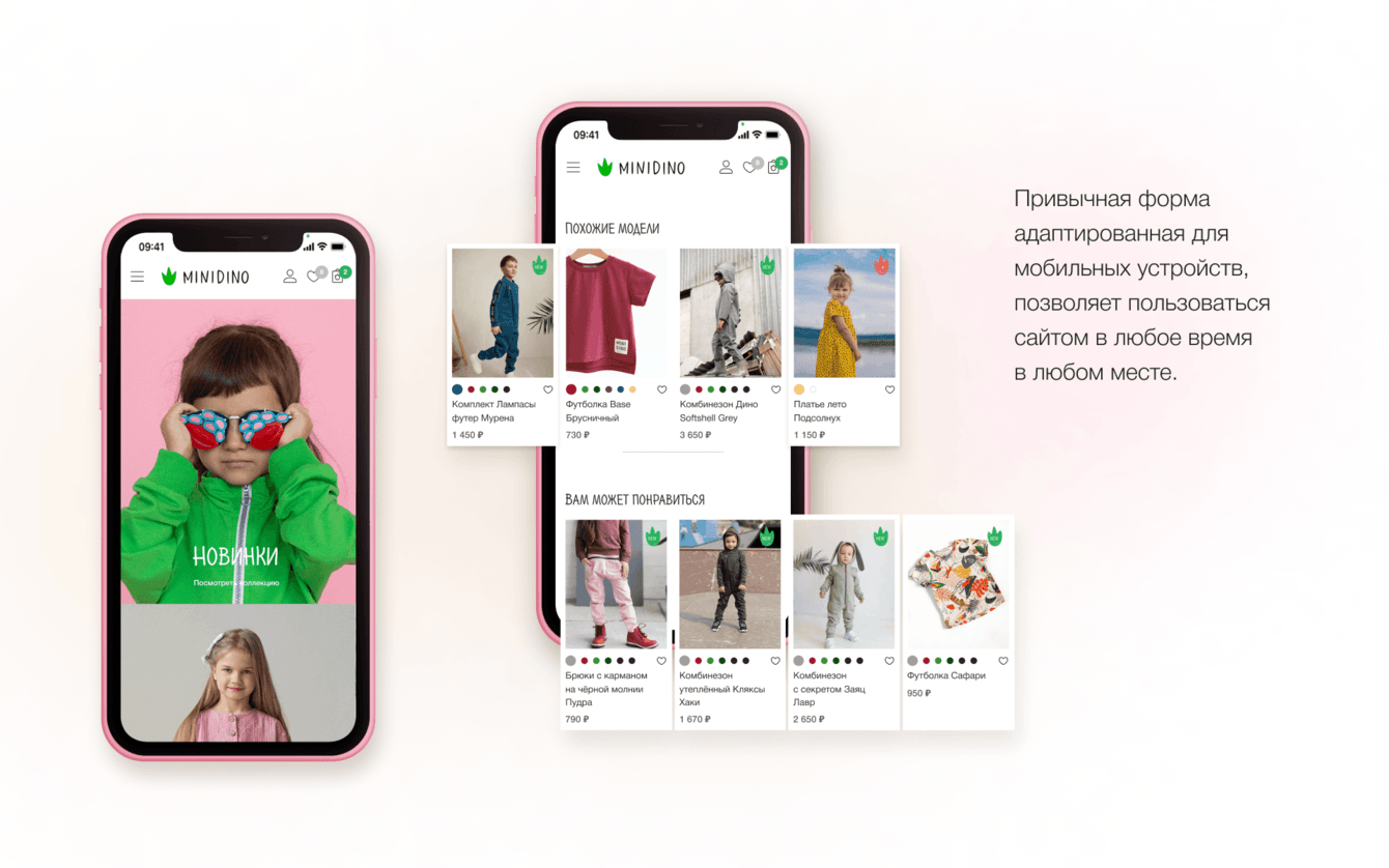 Функционал сайта адаптирован и доступен в удобной и привычной форме для мобильных устройств. Более того, нами предусмотрено два варианта сетки — товары в один ряд и в два ряда. Такой подход способствует эффективной работе с ограниченным пространством используемого устройства.