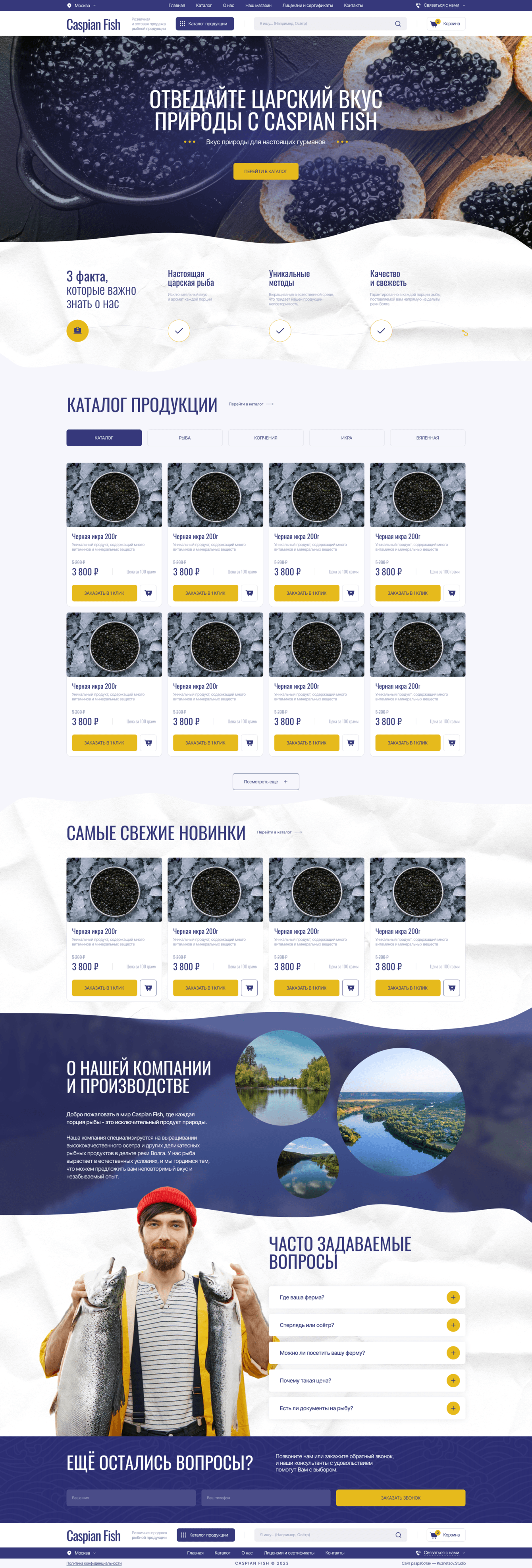 Дизайн сайта выполнен в сочетании стильных трендовых линий и самобытности рыбного ремесла.