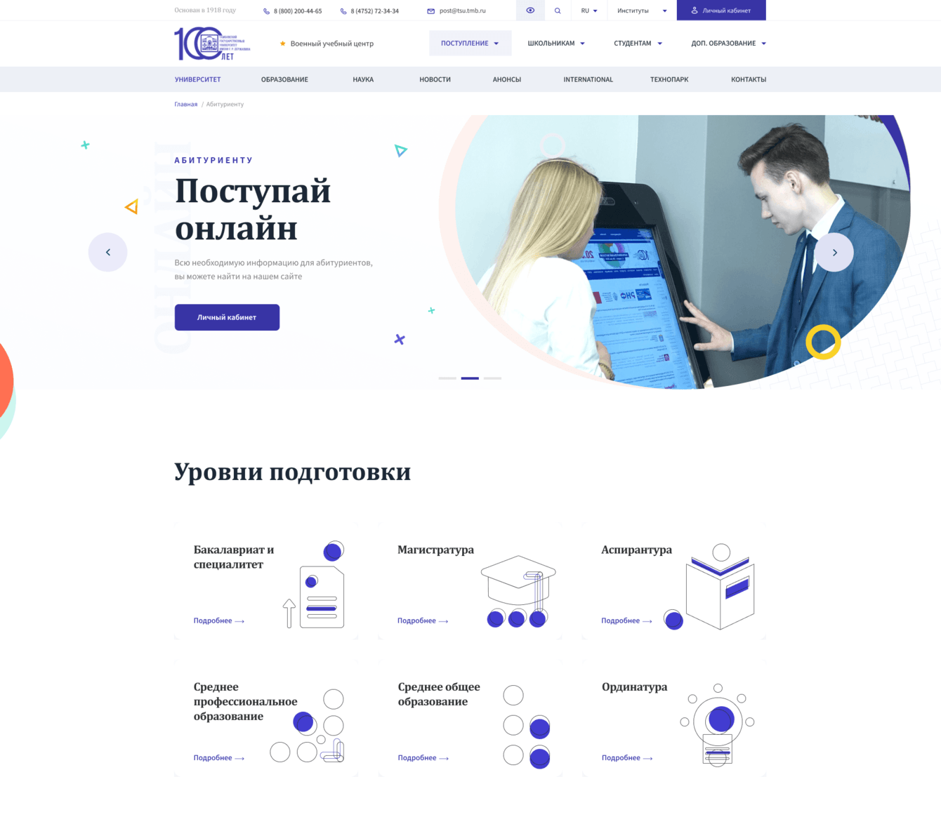 Официальный сайт учебного заведения, которое ведёт свою историю с 1918 года, — это крепкий орешек. Следует устранить любой намек на архаичность, но соблюсти tone-of-voice классического вуза.