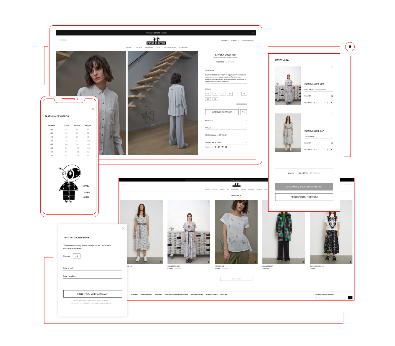 Клиент пришёл к нам с чётким видением проекта. Был максимально подробный бриф со всеми необходимыми структурными элементами, референсами, пожеланиями. К тому же у нас за плечами более 5 лет разработки сайтов с аналогичными механиками, поэтому в данном случае мы пропустили этап исследований и сразу приступили к проработке дизайн-макетов интернет-магазина.
