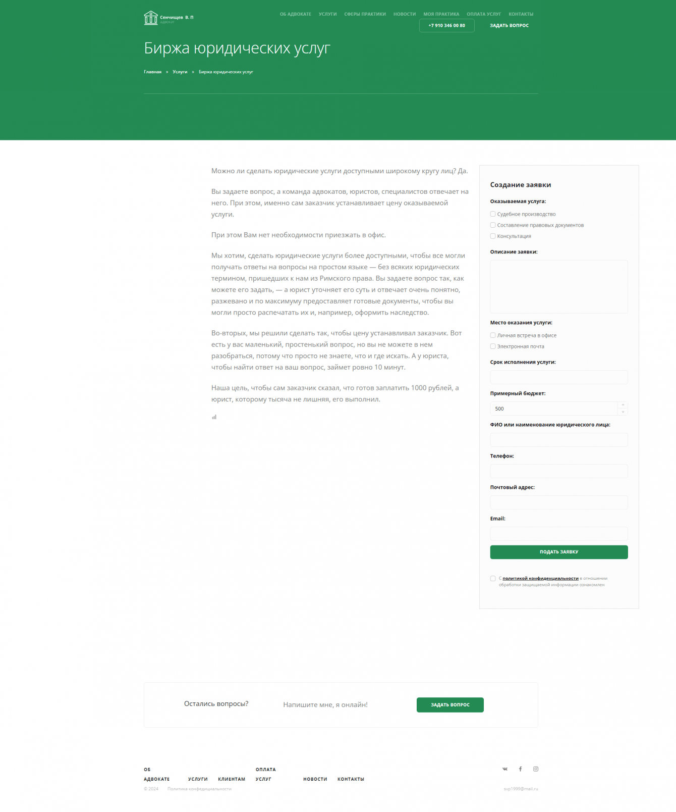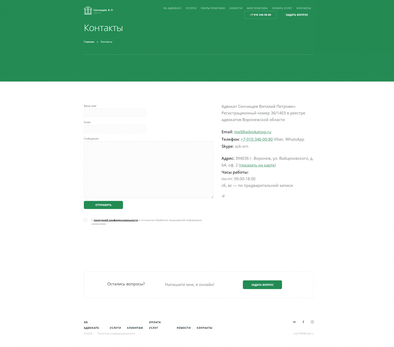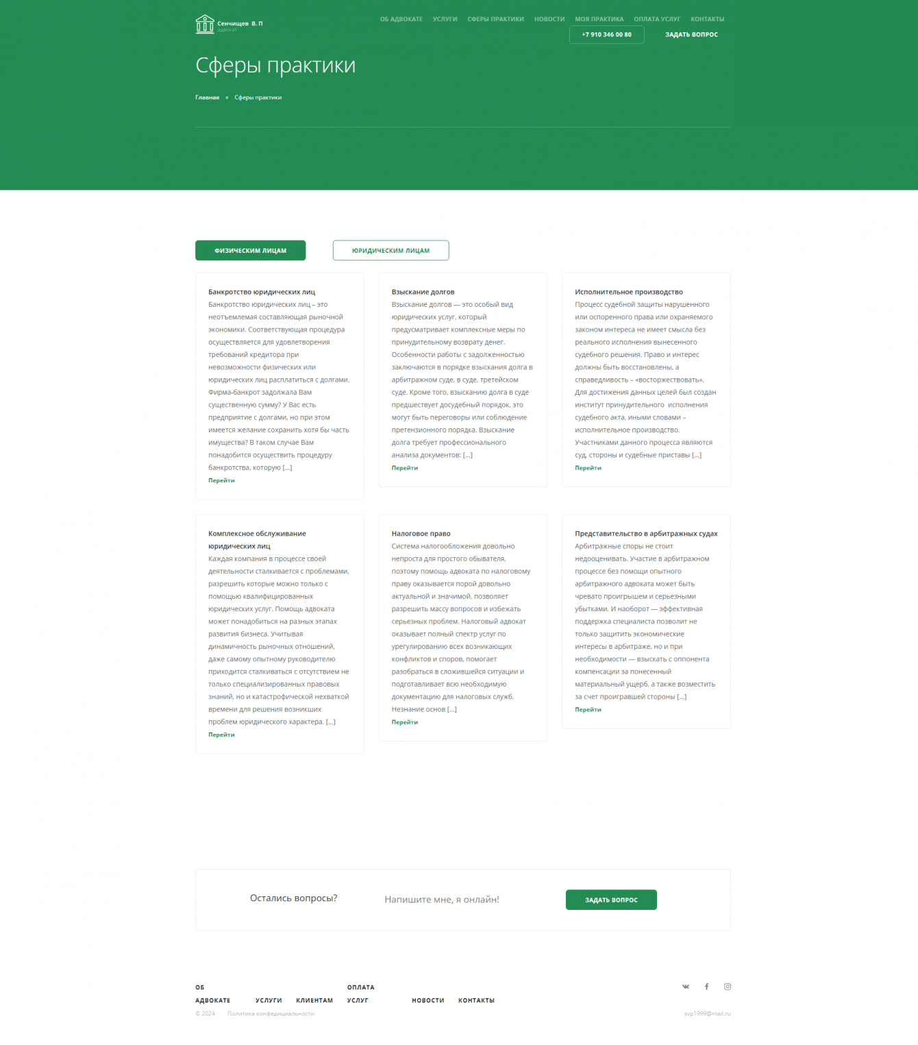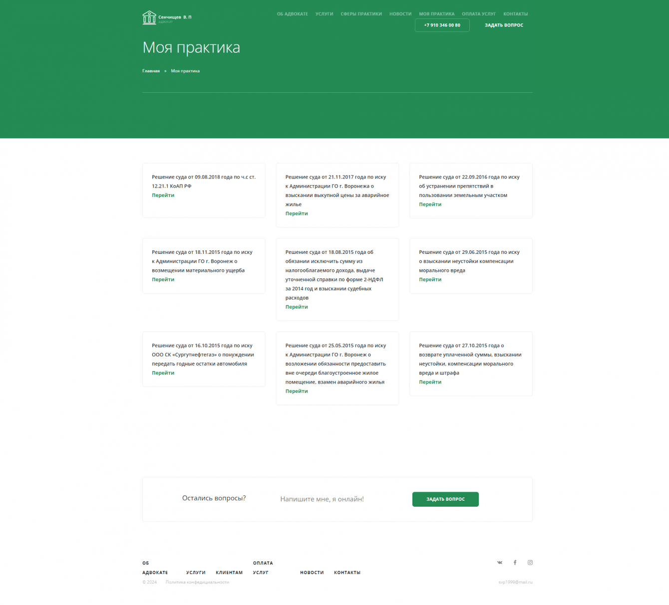 В условиях современного рынка юридические услуги становятся все более востребованными. Адвокат Виталий Петрович Сенчищев – опытный специалист с многолетним стажем работы в различных областях права. Для того чтобы повысить свою узнаваемость среди потенциальных клиентов и предоставить удобный доступ к информации о своих услугах, он принял решение создать собственный сайт.
