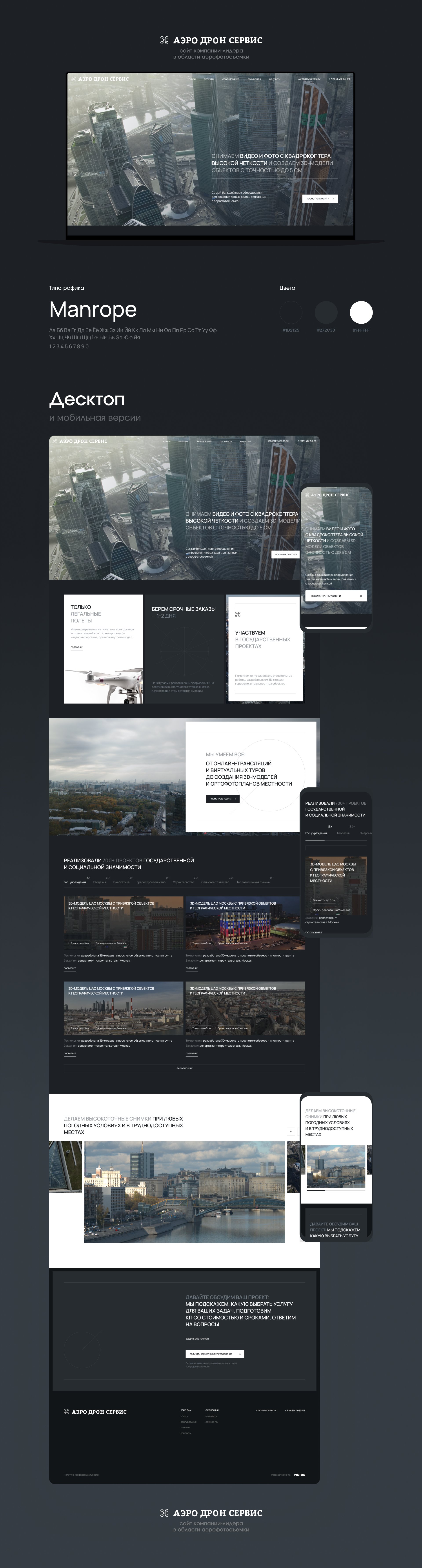 Мы создали стильный и современный сайт, который не только презентует услуги компании, но и служит инструментом продаж и коммуникации. Теперь пользователи могут легко ознакомиться с возможностями компании, посмотреть примеры работ и заказать услуги всего в несколько кликов.