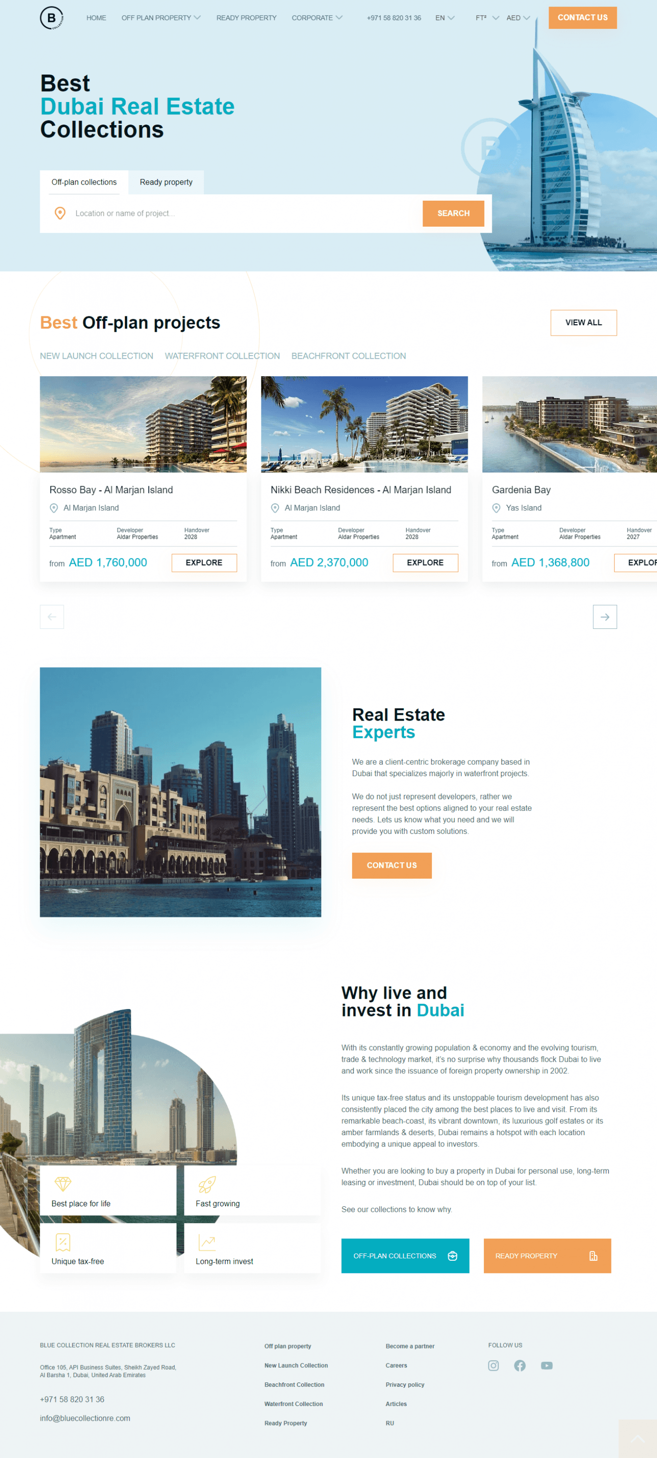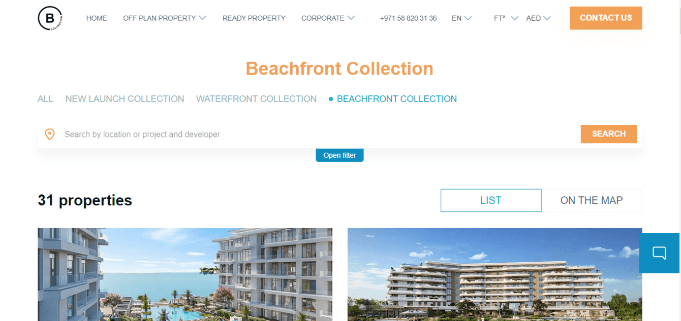 У компании Blue Collection 2 ключевых направления: недвижимость в Дубае — апартаменты и виллы в ОАЭ и проекты недвижимости для инвестиций. Для каждого из направлений мы разработали отдельные листинги. Для Дубая — для новостроек и готовых апартаментов.