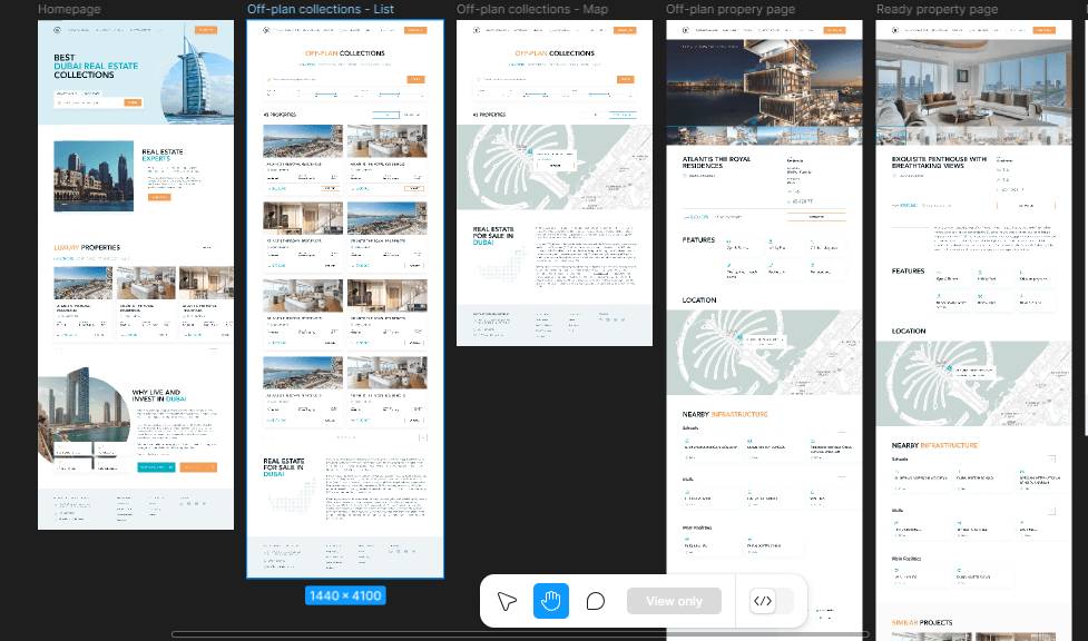 Для направления, связанного с недвижимостью в Дубае, у компании был отдельный брендинг, который мы также интегрировали в дизайн сайта, гармонично сочетая его с основным стилем.