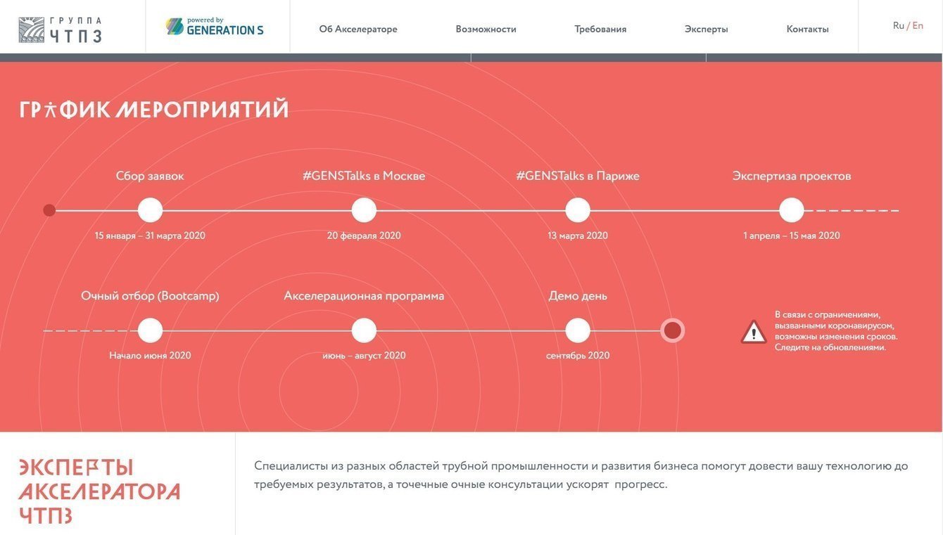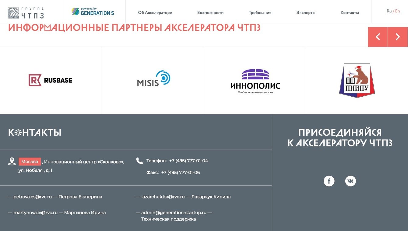 В рамках сотрудничества с АО «Российская венчурная компания» специалистам РуНетСофт была поставлена задача разработать современный landing page для акселератора ЧТПЗ и интегрировать его в сайт платформы GenerationS - https://generation-startup.ru/.