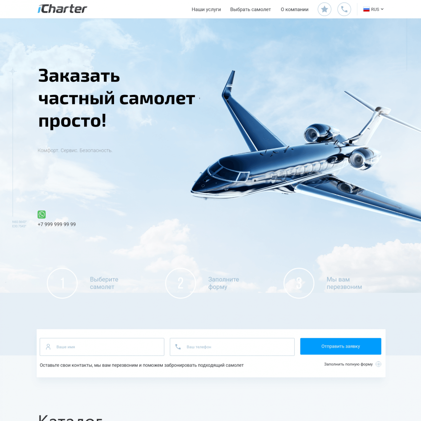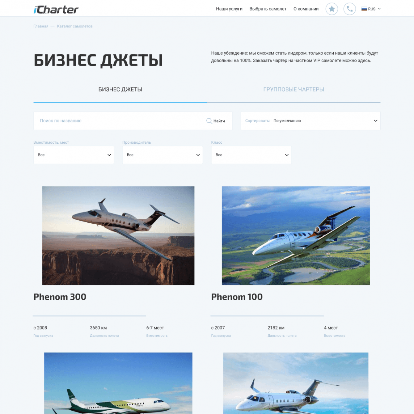 Заказчик обратился к нам с задачей в создании удобного и функционального сайта для сдачи в аренду своих самолётов.