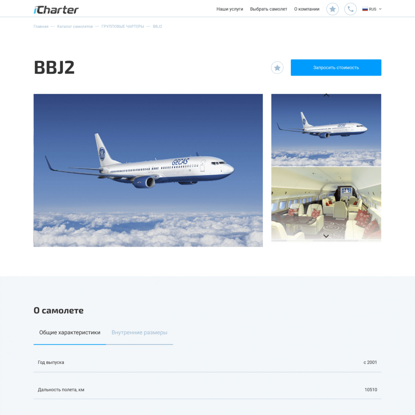 Цель сайта — показать спектр услуг компании и помочь потенциальному клиенту найти подходящий именно ему борт или услугу по перелёту. В пару кликов пользователь сайта может найти необходимый борт, услугу или заказать консультацию специалиста.