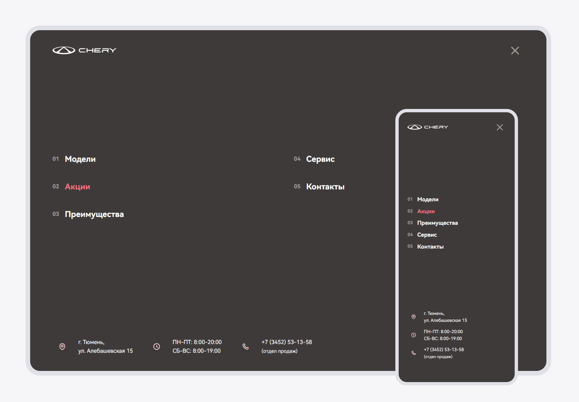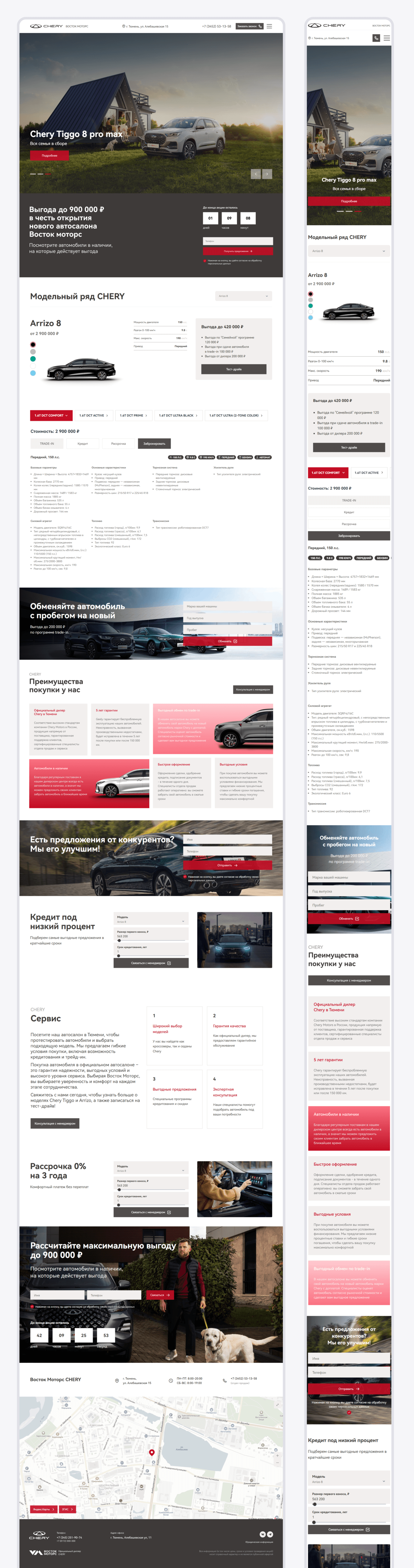 Разработали продающий лендинг для «Восток Моторс Chery» в фирменных цветах бренда с удобной структурой и интерактивными элементами. Сайт сочетает лаконичный дизайн и эффективные инструменты конверсии.
