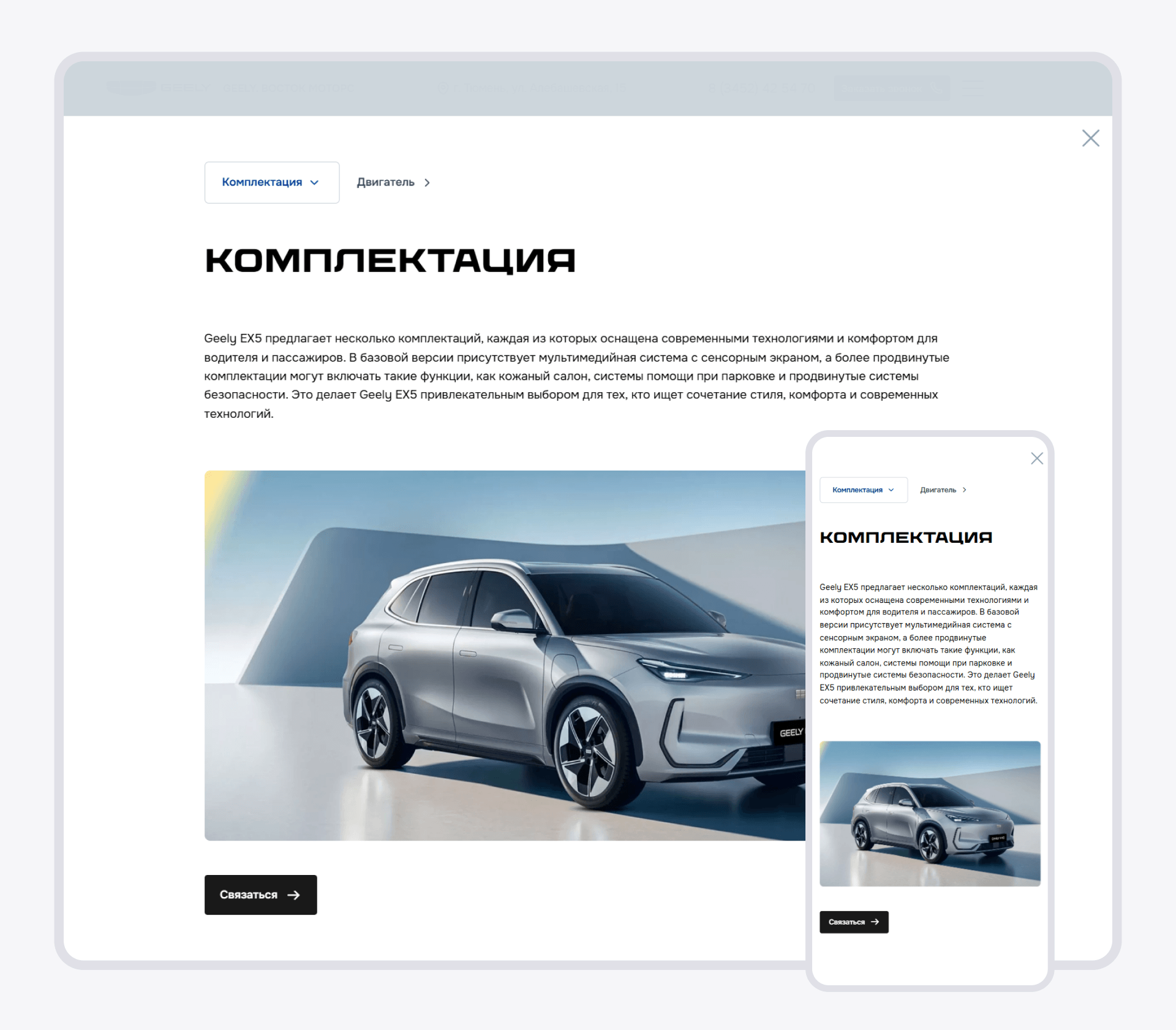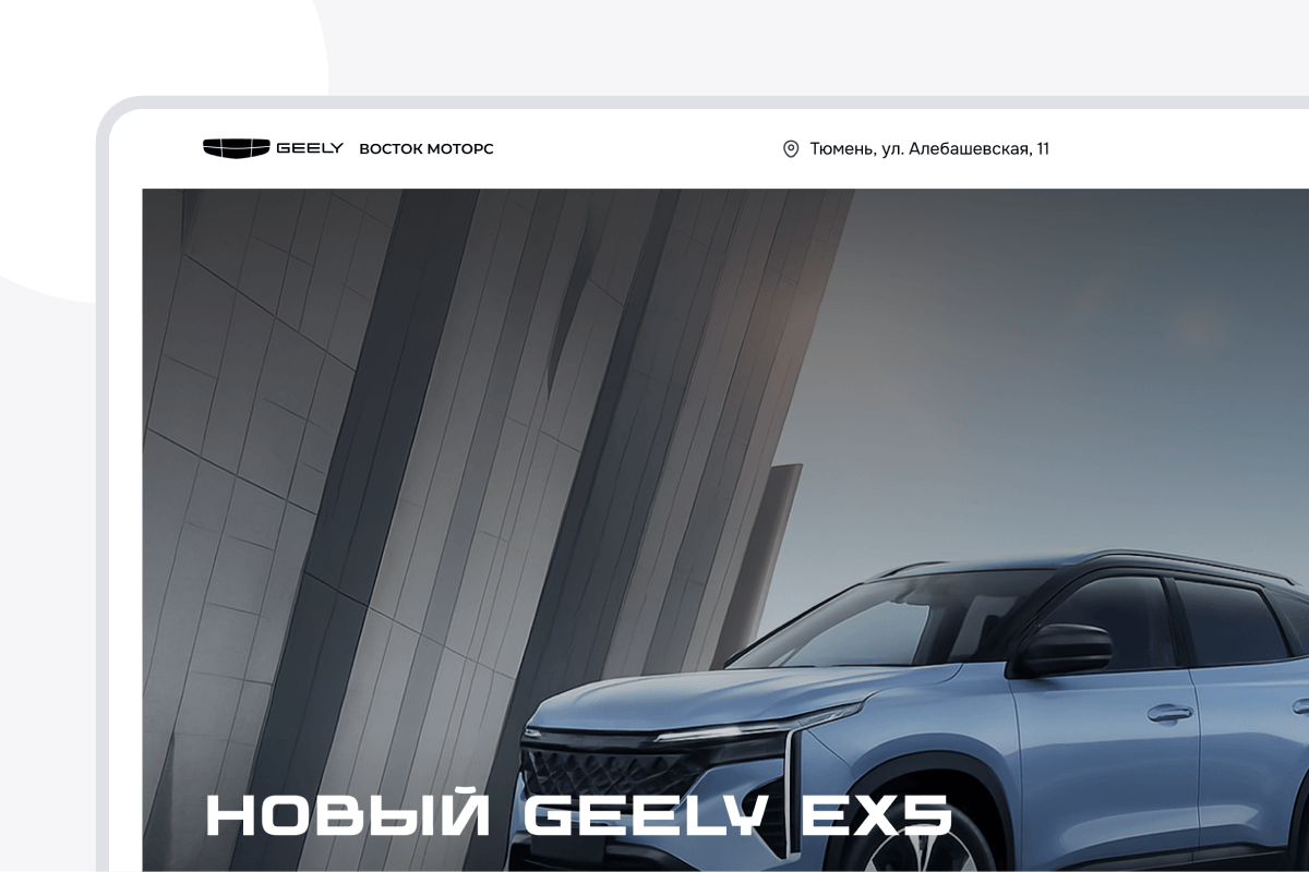 Клиент обратился с задачей создать посадочный сайт для автодилера "Geely", который должен сочетать брендированный дизайн, удобство подбора автомобиля и скорости обработки входящих заявок.