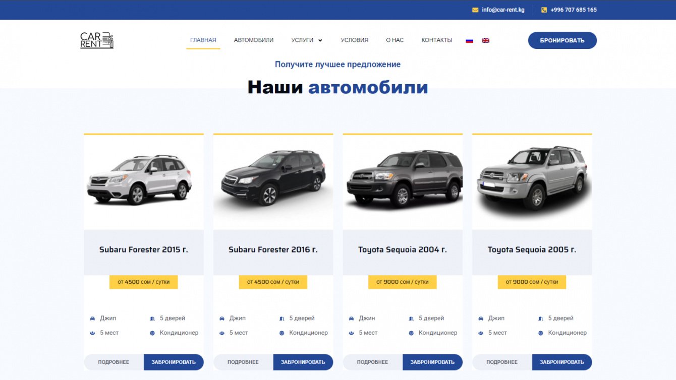 В условиях растущего спроса на услуги проката автомобилей в Кыргызстане, команда проката столкнулась с необходимостью разработки современного и функционального веб-сайта.