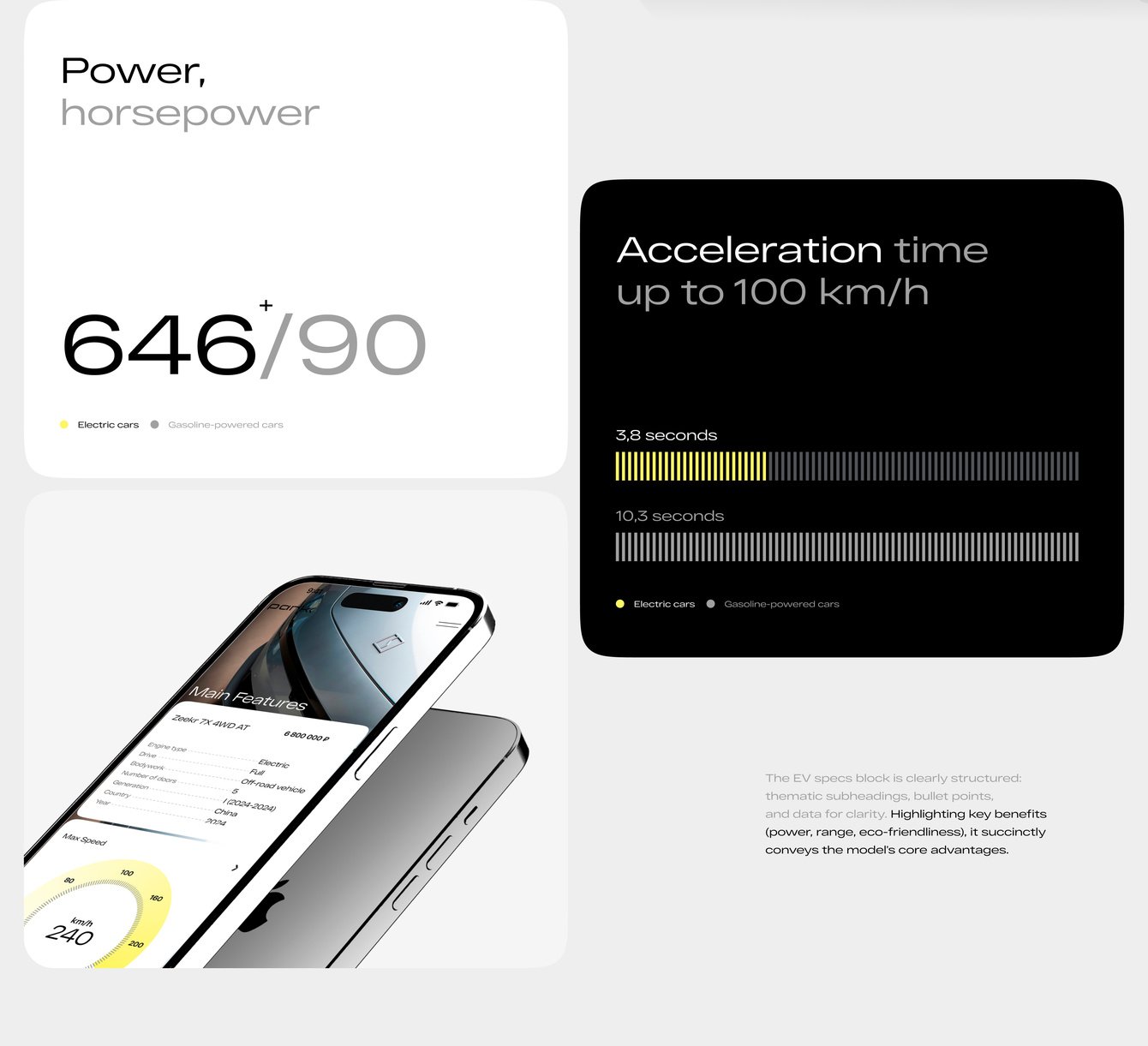 Цвет стал одним из главных инструментов коммуникации. Лимонный оттенок применяется в разделах, связанных с электромобилями и общим контентом — он создаёт ощущение энергии, инноваций и движения.