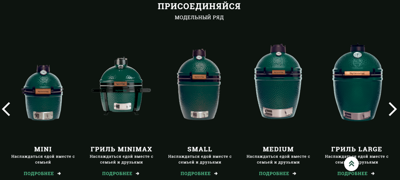 Разрабатывая сайт для официального дилера, мы отталкивались от фирменного стиля компании-производителя. Солидный сайт дает возможность вызвать доверие потенциального контрагента, заинтересовать товаром и вызвать интерес стать дилером. Именно поэтому на сайте не только красивый дизайн, но и много контента, раскрывающего преимущества керамического гриля. Реализованы 3D-фотографии, вращающиеся на 360°. Благодаря им посетитель может рассмотреть до мельчайших деталей гриль и ознакомиться как он устроен.