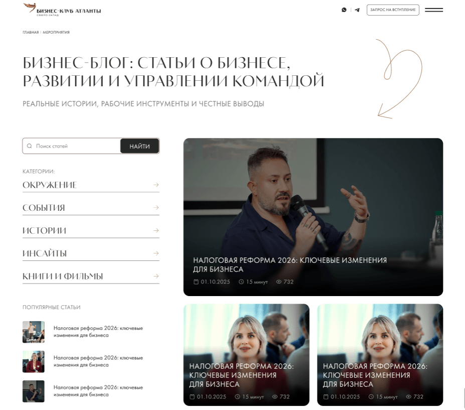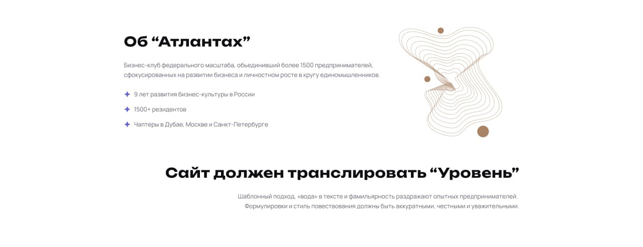 Как итог, сайт бизнес-клуба «Атланты» стал целостным цифровым решением, которое укрепляет сообщество, привлекает новых членов и эффективно поддерживает бизнес-процессы, разработанный с глубоким пониманием своей уникальности своей аудитории.