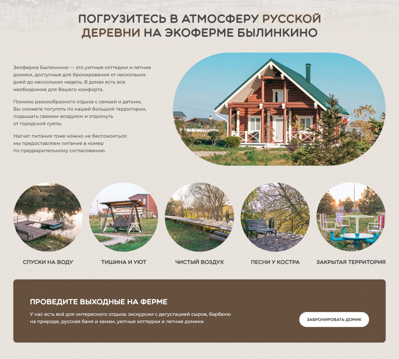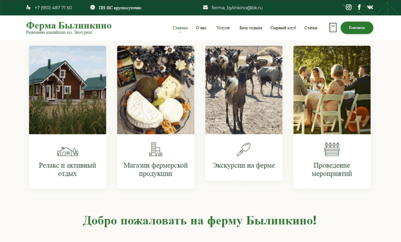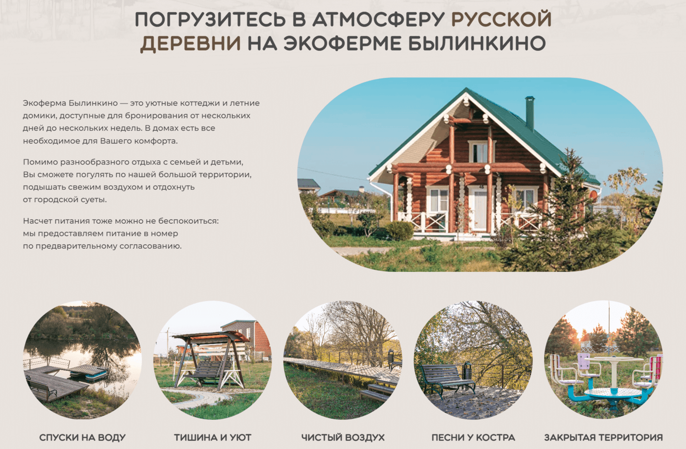 - Теперь посетители сайта могут легко и удобно планировать своё посещение экофермы «Былинкино», узнавать о доступных услугах и специальных предложениях.