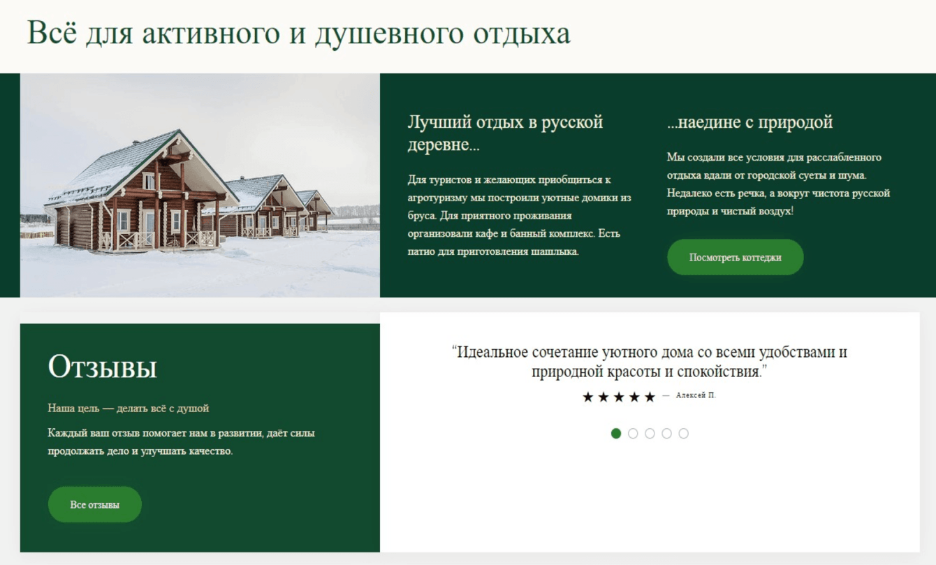 Изучив полученные результаты, пришли к выводу, что прежний сайт сильно устарел по визуальному стилю, текстовой составляющей и на нем отсутствует удобный способ бронирования номеров эко-отеля.