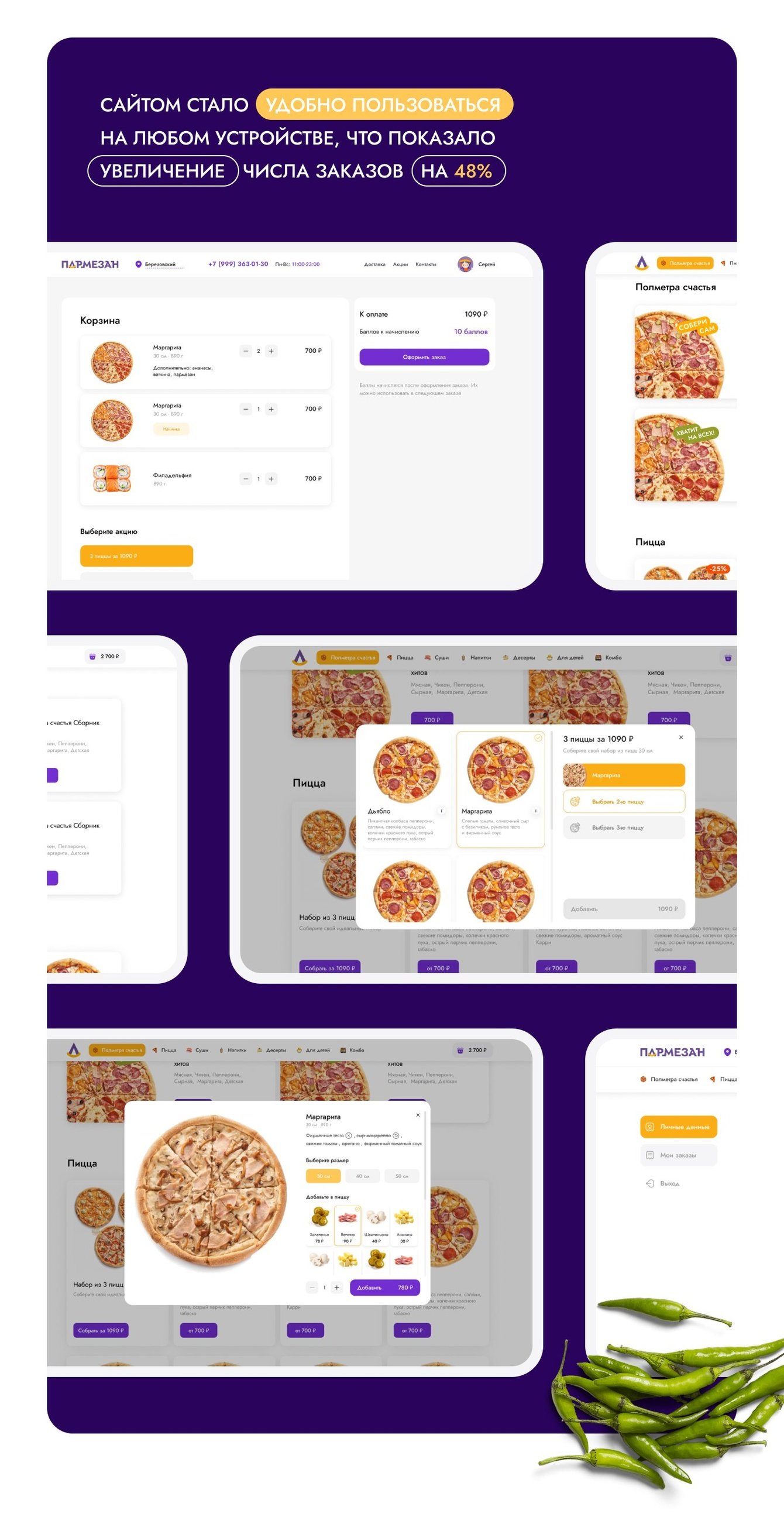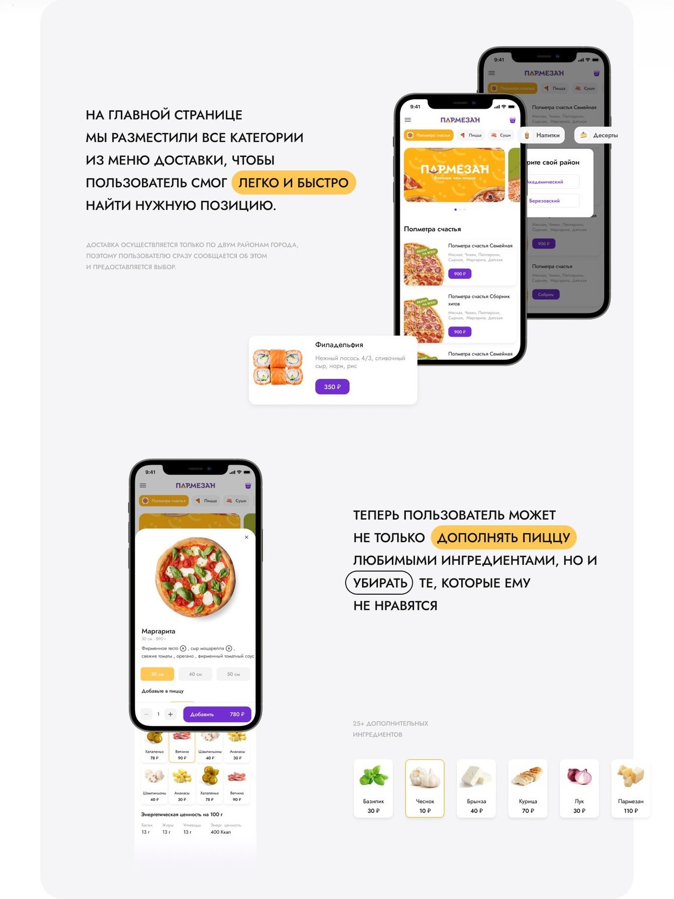 Полностью с нуля были разработаны несколько конструкторов: «Полметра счастья», «Детский сундучок». Они позволяют пользователям собрать свое комбо или полуметровую пиццу :)