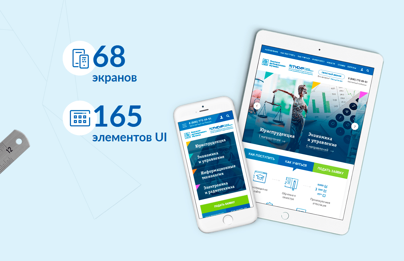 Чтобы сайт был доступен с любого технического устройства, а его использование не вызывало проблем и неудобств у пользователей, мы сделали его адаптивным. Нами были нарисованы и собраны все основные разрешения для адаптивности ресурса. Технологично. Современно. Удобно. Такой, каким должен быть сайт дистанционного образования.