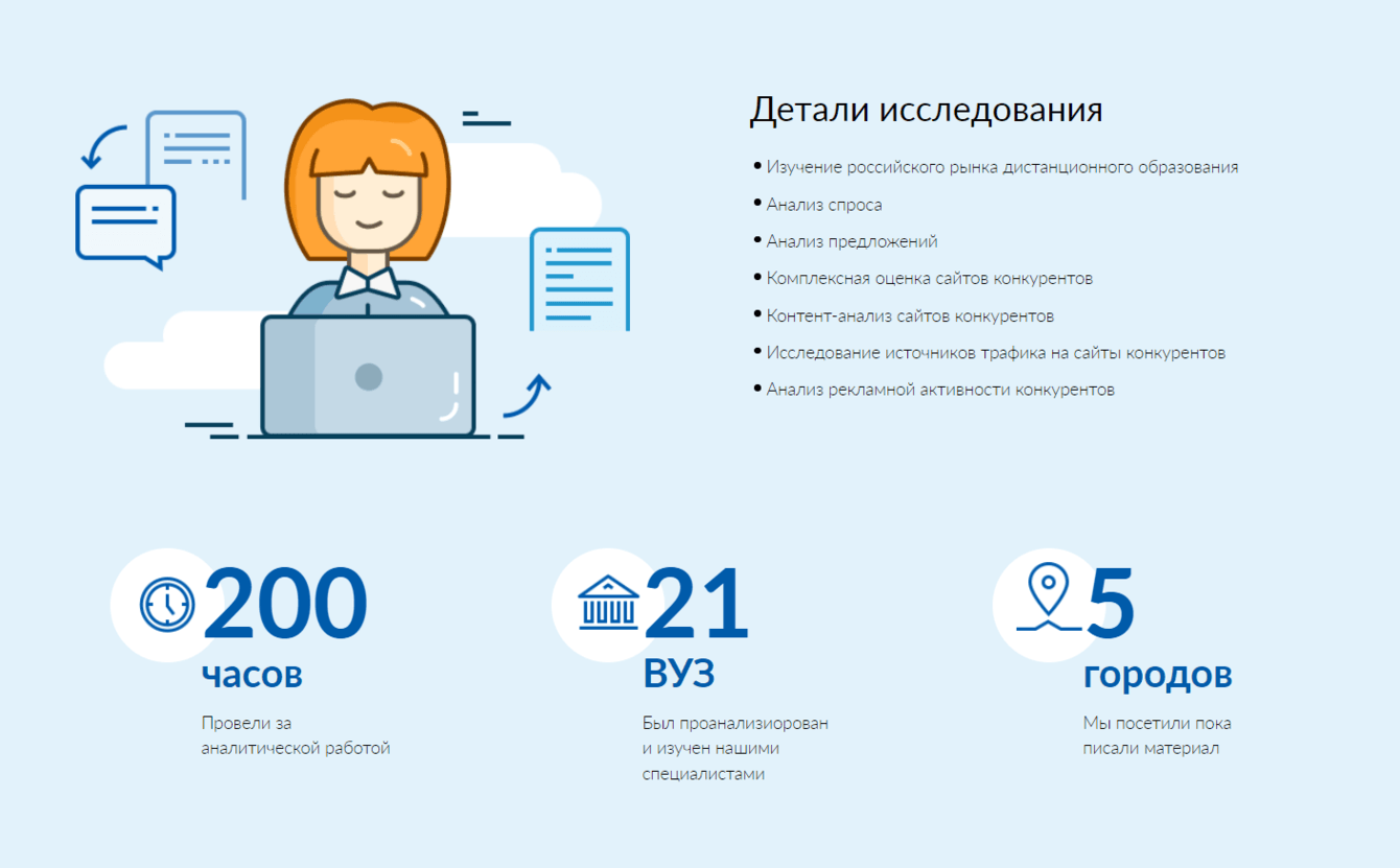 Мы поработали над большим количеством текста, присланным заказчиком. Необходимо было из всего важного выделить САМОЕ ВАЖНОЕ и грамотно представить полученную информацию на сайте. Ненужные фразы вычеркнуты, предложения отредактированы, а заголовки составлены!