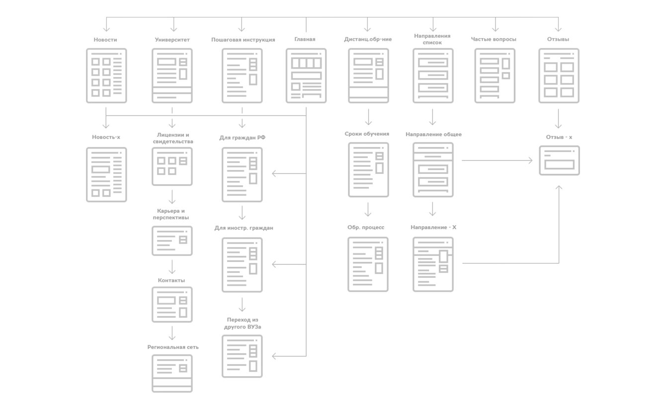 Мы разработали прототип сайта. Продумали основные страницы, их функции, блоки и навигацию. Утвердили с заказчиком структуру.