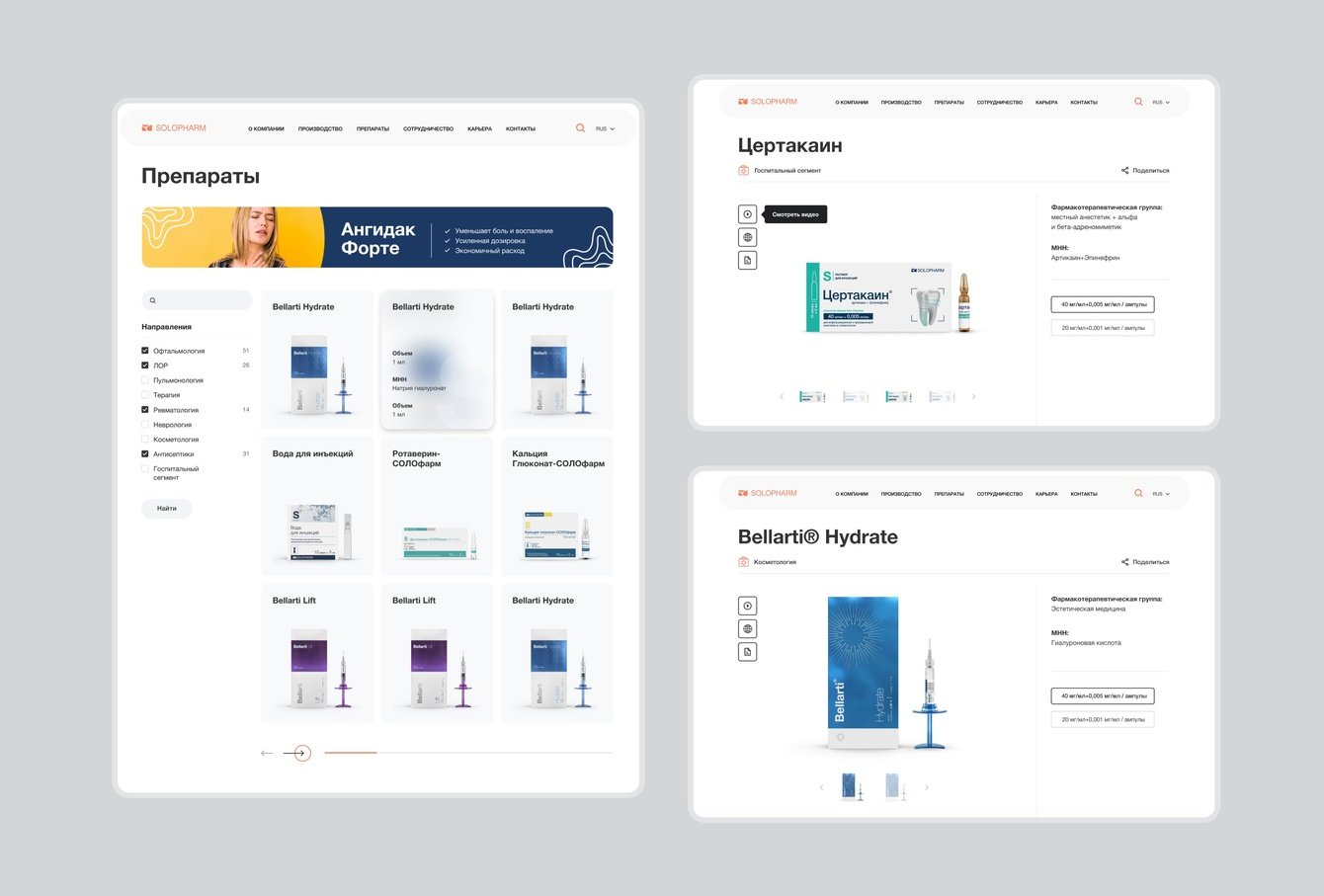 Задачей агентства было не только обновить дизайн, но и превратить стандартный сайт-визитку в полноценный бизнес-инструмент, содержащий информацию для потребителей, сотрудников и партнеров компании Solopharm.