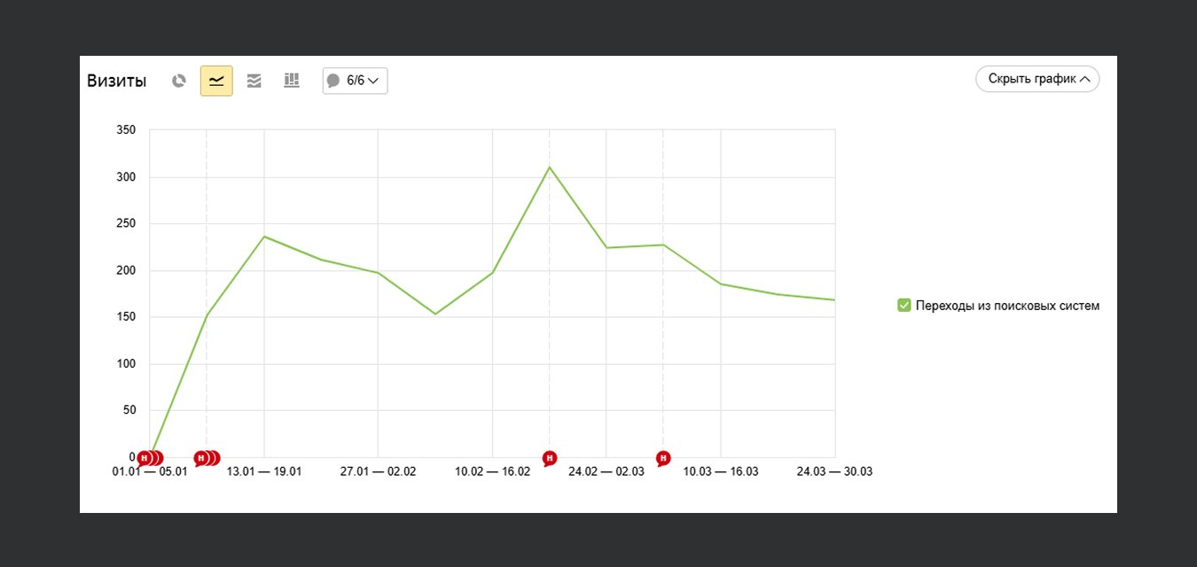 Сделали базовые SEO-настройки, чтобы сайт хорошо индексировался в поисковых системах: подобрали запросы, прописали мета-теги, оптимизировали тексты. И сразу же после запуска сайт стал индексировать и получать переходы из поиска!