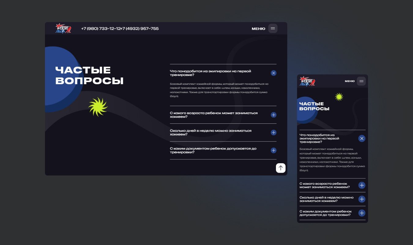Мы разработали элементы фоновой анимации, которая сделала сайт стильным, подвижным и соответствующим тематике проекта — хоккею.