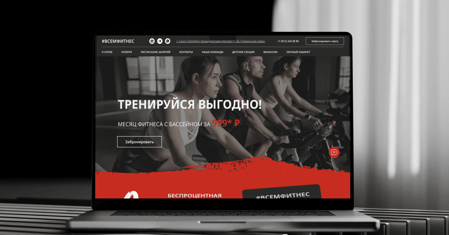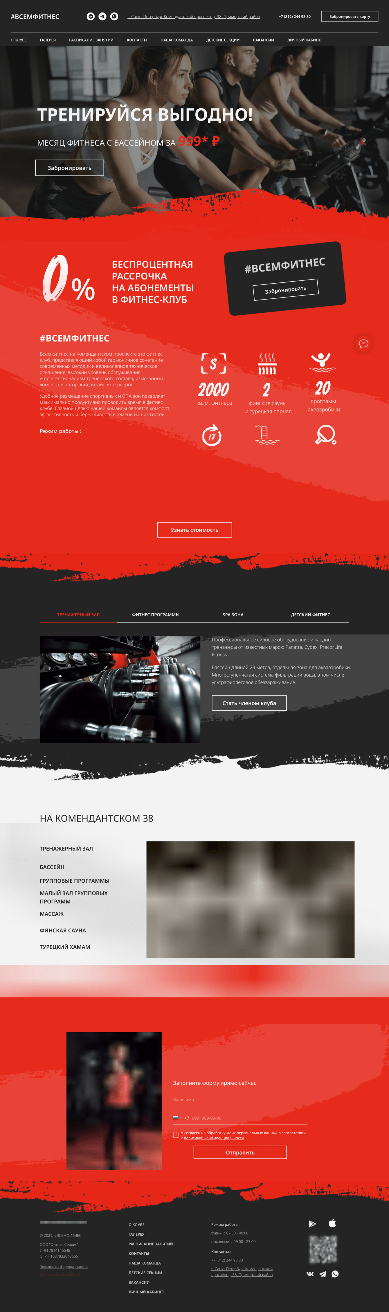 Клиенту требовался комплексный редизайн сайта для фитнес-зала ВСЕМФИТНЕС, расположенного на Комендантском проспекте в Санкт-Петербурге. Основной целью было создание продающего сайта, который бы эффективно представлял услуги фитнес-клуба.